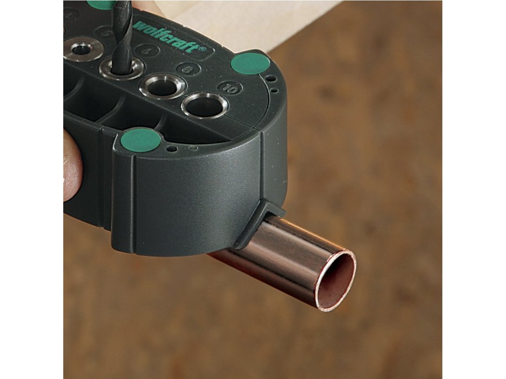 žádný prokluz vrtáku na hladkých plochách díky gumovému nárazníku, polohovací čáry pro přesné vrtání, integrovaná V – drážka k bezpečnému upnutí kruhových materiálů, 5 přesných vrtacích pouzder z kovu pro vrtáky o průměru 4, 5, 6, 8 a 10 mm EAN:4006885468504 Kód produktu:ELN0940 Výrobca:WOLFCRAFTDodatočné parametre