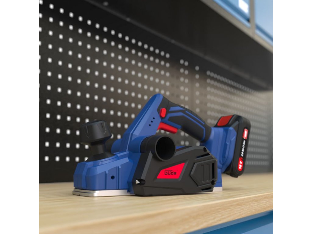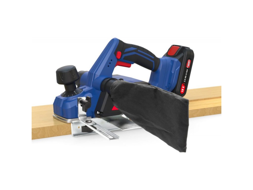 Akumulátorový hoblík zo série akumulátorového náradia 18V E3. Plynulé nastavenie hĺbky záberu až do 1,5 mm. Protišmyková rukoväť s mäkkým povrchom. Ochrana obrobku vďaka automaticky vyklápacej parkovacej pätke. Karbidový obojstranný hobľovací nôž, masívna hliníková základová platňa. V-drážka pre presné zrážanie hrán v rôznych veľkostiach. Drážkový hĺbkový doraz a paralelný doraz pre precíznu prácu. Obojstranné pripojenie na zberné vrecko na prach alebo externý odsávací systém. Dodáva sa bez akumulátora a nabíjačky.