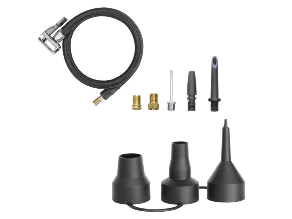 Akumulátorový kompresor a pumpa s príslušenstvom zo série akumulátorového náradia 18V E3. Kompresor na fúkanie vysokým tlakom, napríklad pneumatiky a nafukovacie hračky alebo športové potreby. Prednastavenie tlaku s automatickým vypnutím, LCD displej s manometrom v jednotkách bar alebo psi. Telo s pogumovaným držadlom, LED pracovné osvetlenie, hadica a 3 adaptéry. Pumpa na fúkanie veľkým množstvom vzduchu, napríklad nafukovacích člnov, nafukovacích matracov a podobne, vhodná aj na odčerpávanie/odsávanie vzduchu. Telo s pogumovaným držadlom, 3 adaptéry. Bez akumulátora a nabíjačky.