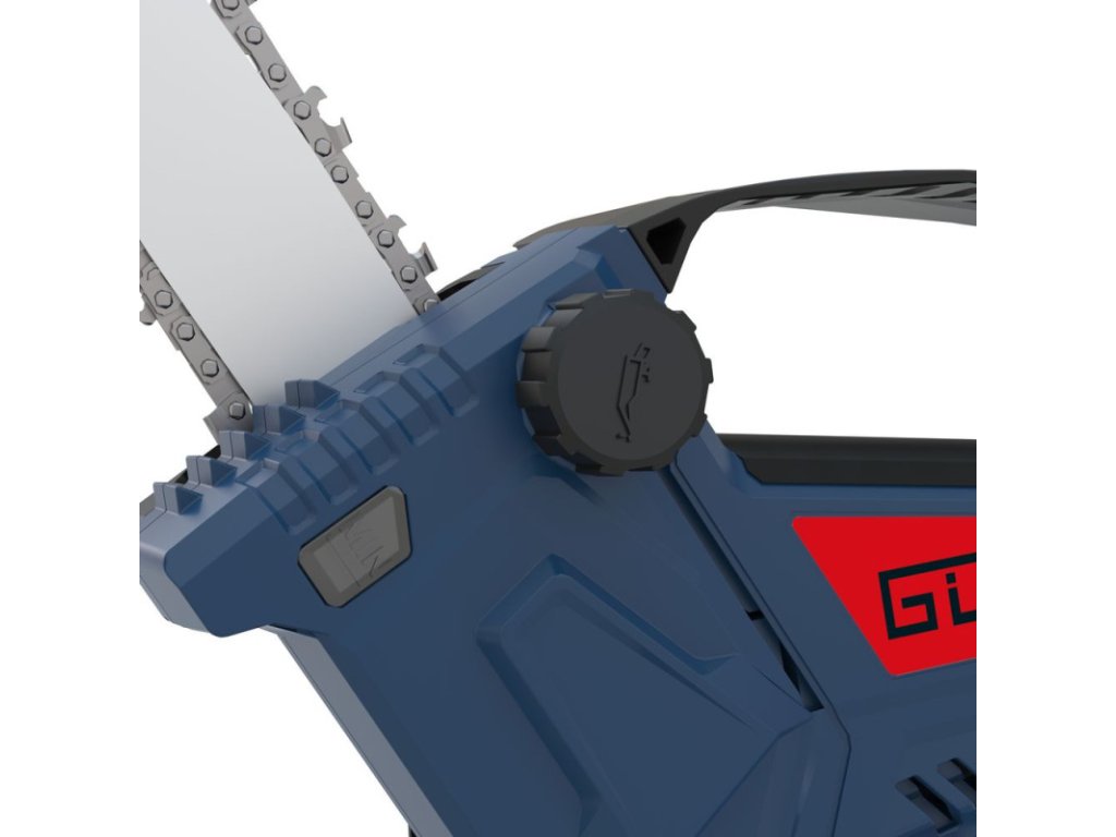 Akumulátorová mini reťazová píla GMK 18-0-S je výkonná, mimoriadne šikovná a mnohostranne použiteľná jednoručná píla na konáre vhodná na orezávanie ovocných stromov, odvetvovanie, ako aj na akúkoľvek starostlivosť o porasty okolo domu a v záhrade. Súčasťou balenia je kvalitná vodiaca lišta a vysokokvalitná reťaz s dlhou životnosťou. Systém rýchleho napínania reťaze bez použitia náradia a automatické mazanie reťaze umožňujú efektívnu prácu bez nepríjemných prestávok. Táto malá píla presviedča príjemným pocitom, bezkefkovým a vysokoúčinným elektromotorom s nízkymi vibráciami, ako aj nízkou hmotnosťou pre prácu bez únavy. Horná bezpečnostná rukoväť a chránič rúk poskytujú najlepšiu možnú ochranu pred poranením. Ľahká a praktická akumulátorová mini reťazová píla zo série akumulátorového náradia E3. Bezkefkový motor pre maximálny výkon a dlhšiu životnosť. S olejovou nádržkou na automatické mazanie reťaze. Napínanie a výmena reťaze a vodiacej lišty bez použitia náradia. Ergonomická mäkká rukoväť, bezpečnostná rukoväť s ochranným puzdrom, ochranný kryt reťaze a vodiacej lišty pre bezpečné uloženie. Vrátane bezpečnostného krytu reťaze. Dodáva sa bez akumulátora a nabíjačky.