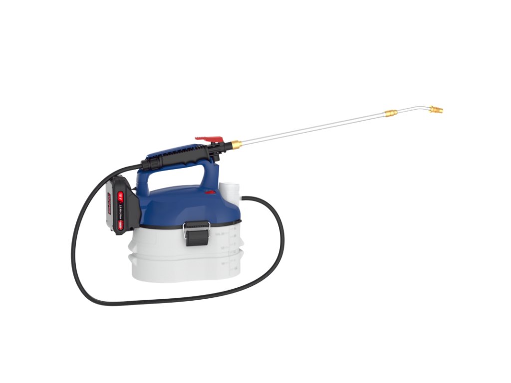 Akumulátorový rozprašovač zo skupiny akumulátorových systémov 18V E3 na použitie okolo domu a v záhrade. Teleskopická rúrka s mosadznou tryskou 46 - 73 cm, odmerka, rukoväť, 110 cm rozprašovacia hadica, 3 l nádoba, nosný popruh, rúrka s aretačným ventilom pre trvalú prevádzku. Vrátane akumulátora a nabíjačky.