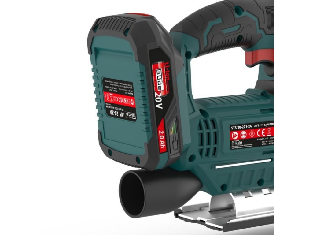 Akumulátorová priamočiara píla so 4 stupňami predkmitu, rezanie dreva do hrúbky 80 mm. Ofukovanie prachu, transparentný kryt, rýchla výmena pílového listu bez náradia, hliníková základová doska, signalizácia stavu nabitia. Integrované pracovné LED svetlo. Prípojka pre externé odsávanie prachu. Rýchly postup pílenia a optimálna manévrovateľnosť. Uhol rezu voliteľný z oboch strán s pevným nastavením 0°/15°/30°/45°.