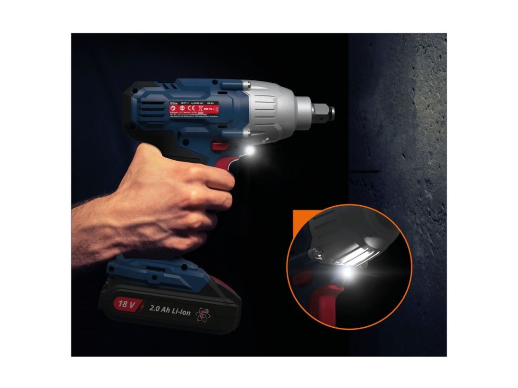Akumulátorový rázový uťahovák zo série akumulátorového náradia 18V E3. Príručný a výkonný, dlhý 185 mm. 1/2" štvorhranné upínanie pre rýchlu výmenu bitov. Elektronika s reguláciou otáčok a ochranou proti preťaženiu. Pravo/ľavobežný chod s brzdou motora. Robustný obal prevodovky z hliníkovej zliatiny. Pogumovaná rukoväť pre bezpečnú prácu. Klip na opasok. Integrovaná LED lampa k osvetleniu pracovnej oblasti. Ukazovateľ stavu nabitia batérie. Bez batérie a nabíjačky.