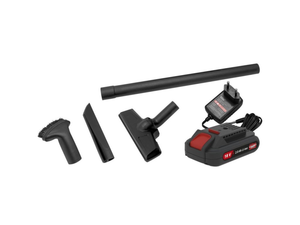 Akumulátorový ručný vysávač prachu HSS 18-201-05 zo série akumulátorových systémov 18V E3 na použitie v domácnosti a záhrade. Vďaka rôznym násadám, ako napríklad násade na vysávanie škár, sa dá použiť na vysávanie malých priestorov a rohov. Predlžovacia rúrka, násada na vysávanie škár, násada s kefkami, násada na vysávanie podlahy, akumulátor, nabíjačka.