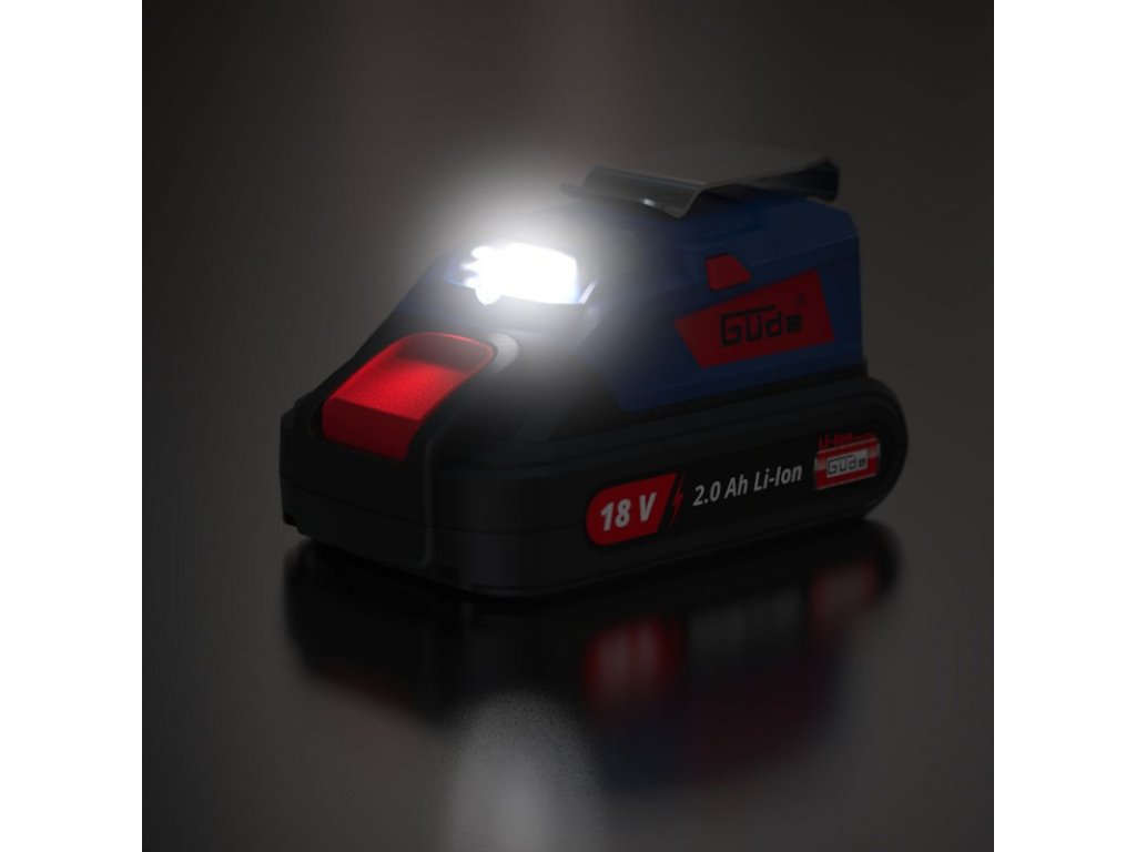 Akumulátorový USB adaptér so svietidlom zo série akumulátorového náradia 18V E3. USB pripojenie (typ A) vhodné na nabíjanie elektronických prístrojov, ako sú napríklad smartfóny. Funkcia baterky s výkonným LED svietidlom. Klasická spona na opasok pre nosenie na stavenisku. Zapínač/vypínač pre funkciu nabíjania USB. Zapínač/vypínač pre LED svetidlo. Bez akumulátora a nabíjačky.