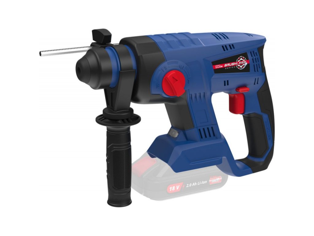 Akumulátorové vŕtacie kladivo zo série akumulátorového náradia 18V E3. Pogumovaná rukoväť pre bezpečnú prácu, variabilná, odnímateľná prídavná rukoväť. Kovový doraz na nastavenie hĺbky vŕtania, upínanie nástrojov SDS plus. Pravý/ľavý chod, možnosť vypnutia vŕtania s príklepom, zastavenie otáčania pre ľahké sekacie práce, LED pracovné svetlo, 4 funkcie: vŕtanie/sekanie/vŕtanie s príklepom/zastavenie otáčania. Dodáva sa bez akumulátora a nabíjačky.