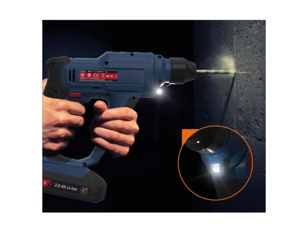 Akumulátorové búracie kladivo zo série akumulátorového náradia 18V E3. Búracie práce (s použitím príklepu) alebo vŕtanie (bez použitia príklepu). Možnosť vypnutia príklepu pri vŕtaní do dreva alebo do kovu. Rýchloupínacie skľučovadlo SDS plus na výmenu vrtákov bez použitia náradia. Regulácia otáčok. Poistka proti preťaženiu. Ľahký a kompaktný dizajn. Pravo/ľavotočivý chod. Integrovaná LED na osvetlenie pracovnej oblasti. Mäkká ergonomicky tvarovaná rukoväť pre bezpečnú prácu. Bez batérie a nabíjačky.