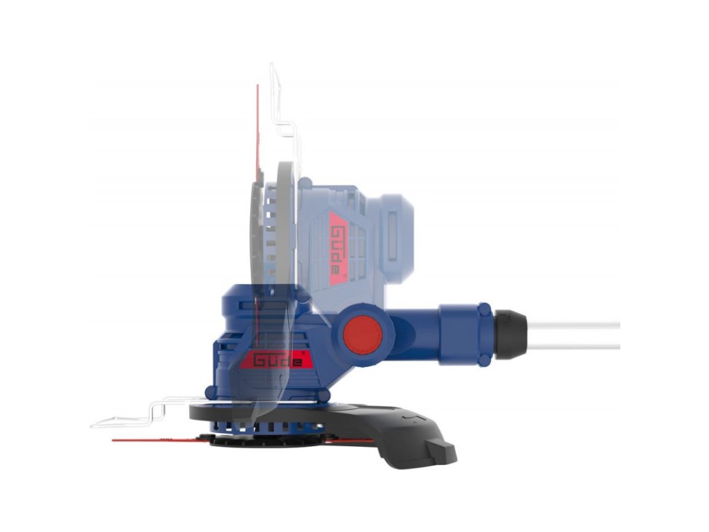 Akumulátorový vyžínač so systémom batérie 18V E³. Dvojité nože pre efektívnu prácu, trimovacia hlava otočná o 180° a sklopná do 5 polôh, teleskopická rukoväť, prídavná rukoväť, uloženie náhradných nožov v prídavnej rukoväti, strmeň pre ochranu rastlín, Softgrip rukoväť. Vrátane 20 náhradných nožov, batérie 2,0 Ah a nabíjačky 0,5 A.