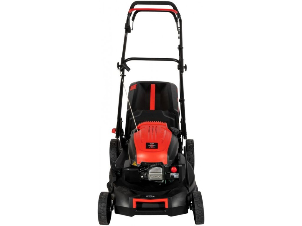 Kosačka s výkonným štvortaktným motorom, štartovanie bez námahy vďaka reverznému štartu, ergonomicky tvarovaná rukoväť s dvojpolohovým nastavením výšky. Podvozok z oceľového plechu s práškovým nástrekom. Sedempolohové centrálne nastavenie výšky kosenia. Zberný vak na trávu s objemom 60 l s ukazovateľom stavu naplnenia. Palivové čerpadlo Primer. Pohon zadných kolies na guľôčkových ložiskách prostredníctvom plynule prepínateľného prevodového stupňa, bočné vyhadzovanie, prípojka na čistenie. Na kosenie trávnika s plochou do 1400 m2.