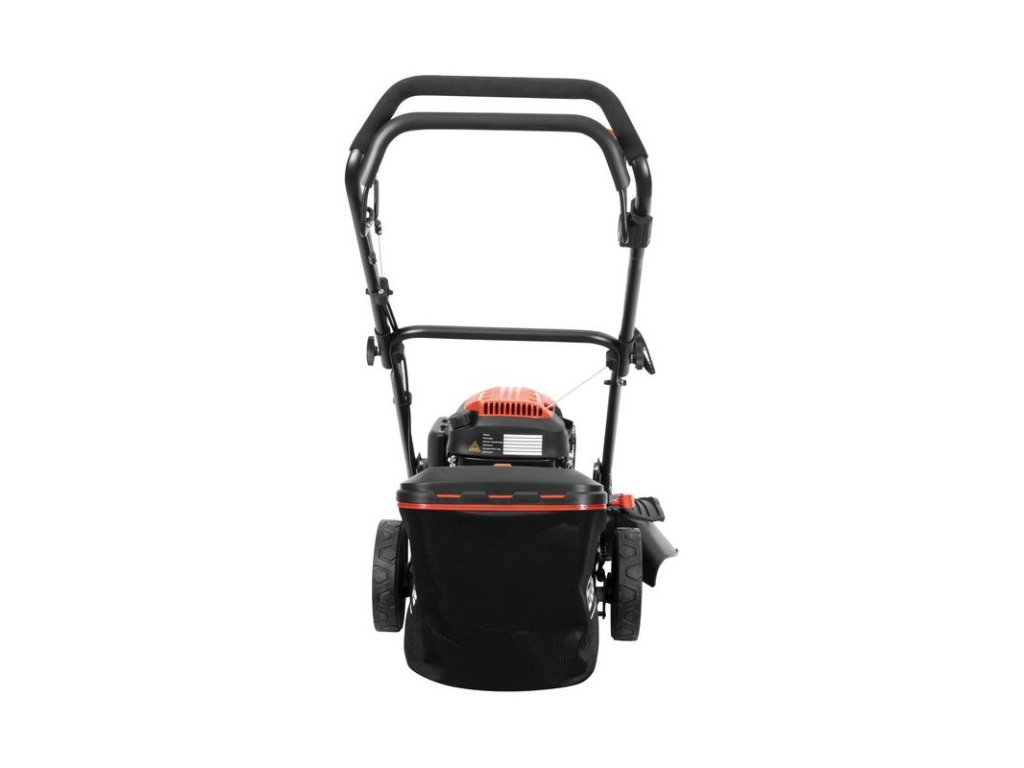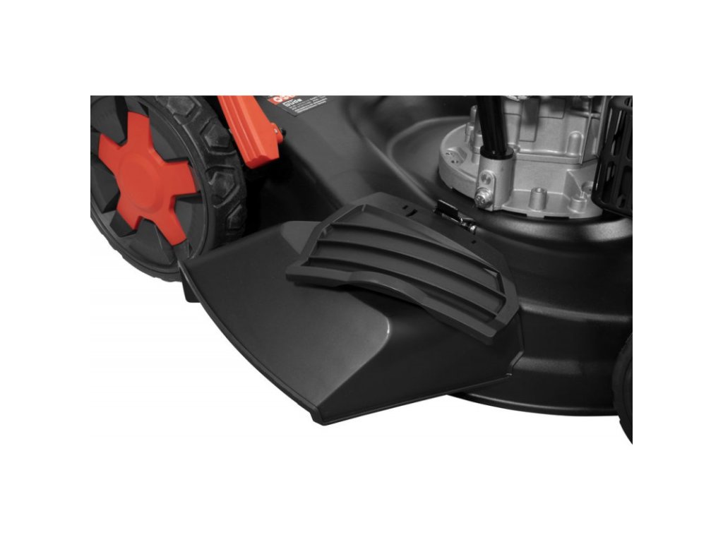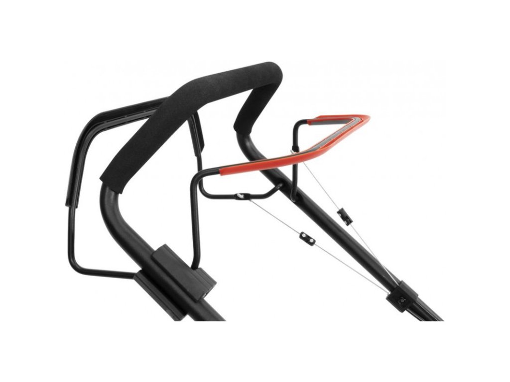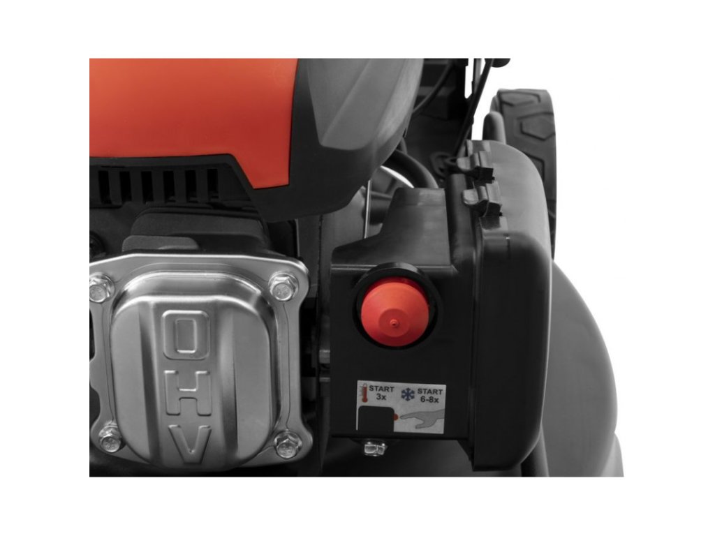 Kosačka s výkonným štvortaktným motorom, štartovanie bez námahy vďaka reverznému štartu, ergonomicky tvarovaná rukoväť s dvojpolohovým nastavením výšky. Podvozok z oceľového plechu s práškovým nástrekom. Sedempolohové centrálne nastavenie výšky kosenia. Zberný vak na trávu s objemom 60 l s ukazovateľom stavu naplnenia. Palivové čerpadlo Primer. Pohon zadných kolies na guľôčkových ložiskách prostredníctvom plynule prepínateľného prevodového stupňa, bočné vyhadzovanie, prípojka na čistenie. Na kosenie trávnika s plochou do 1800 m2.