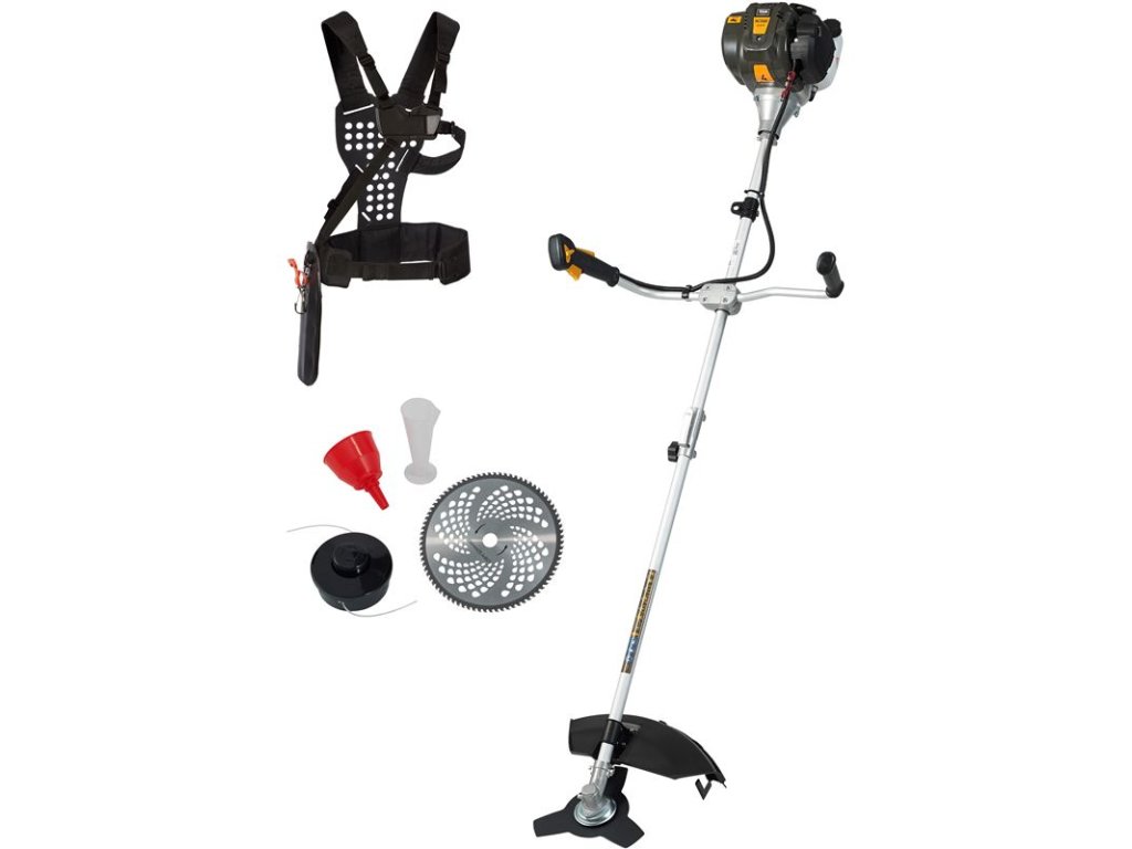 Benzínová kosačka a krovinorez so 4-taktným motorom ktorý má niekoľko výhod oproti 2-taktným motorom: nižšie otáčky (nižšia hlučnosť), pohodlnejšia prevádzka motora, lepšia životnosť (menšie opotrebovanie v dôsledku nižších otáčok), netreba aby sa olej zmiešal s benzínom (oddelená náplň oleja a benzínu). Krovinorez má nízke vibrácie a ergonomický dizajn a možno ho jednoducho zmeniť z vyžínača na chod s čepeľou a naopak. Súčasťou balenia je nasledovné vybavenie: profesionálny nosič, 2-strunová strunová hlava, 3-zubý kotúč na hrubšiu burinu, pílový kotúč 80T, ktorý možno použiť na čistenie kríkov a konárov do 3-4 cm, odmerka na motorový olej, náradie, popruh na chrbát a kľúč na zapaľovacie sviečky. Hriadeľ možno rozdeliť na polovicu pre ľahšiu prepravu a skladovanie. Krovinorez je dodávaný bez motorového oleja! (vyžaduje 80 ml oleja SAE30)Charakteristika a technické údaje: Výrobca motora: Texas Typ motora: 4-takt Zdvihový objem: 35,8 ccm Objem nádrže: 0,65 litra Výkon (Max): 1,0 kW pri 6500 ot./min. Karburátor: Membrána Deliteľný hriadeľ Štartér: Ťahací štartér Motorový olej: SAE 30 Palivo: Bezolovnatý benzín Objem motorového oleja: 0,08 litra Rukoväť: V-rúčka Čepeľ: 3-zub Pracovná šírka (čepeľ): 25 cm Strihacia hlava: 2-strunová tap'n go Pracovná šírka (struna): 42 cm Hmotnosť: 8,2 kg Záruka na motor: 3 roky TEXAS je 100% dánska rodinná firma, ktorá vyrába záhradnú techniku od roku 1960. Všetko to začalo so záhradnými kultivátormi, no dnes sa sortiment rozšíril na všetky typy motorových záhradných strojov (elektrický, batériový a benzínový pohon). Hrdé tradície sa začali v továrni v Dánskom Odense, kde dodnes sídli. TEXAS vlastní 2 továrne, ktoré vyrábajú väčšinu našich záhradných strojov. To dáva plnú kontrolu nad vývojom, kvalitou a kontrolou, ako aj zodpovednú a modernú výrobu.Dodatočné parametre