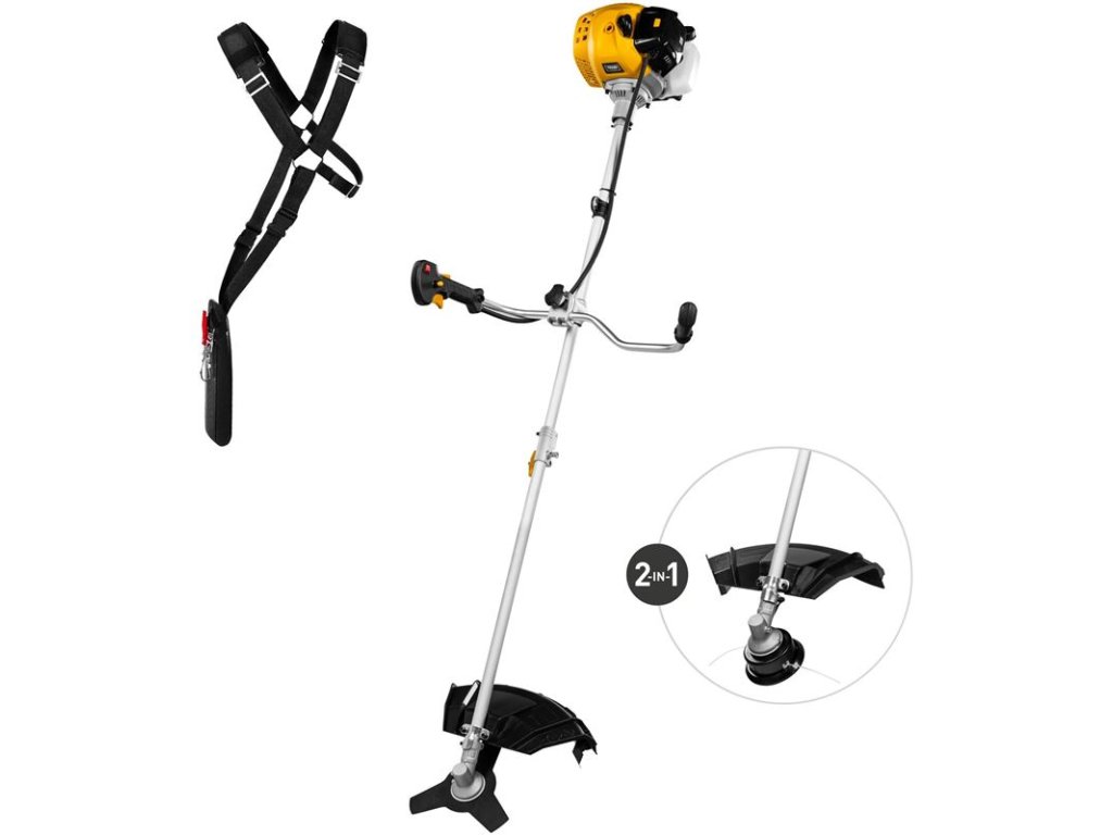 Benzínový krovinorez TEXAS BCU43S s deliteľným hriadeľom vám umožní efektívne kosiť trávu a čistiť kríky či porasty v záhrade alebo na zarastených plochách. Výkonný motor s objemom 43 cm3 poskytuje dostatok sily, či už ho používate ako strunovú kosačku alebo klasický krovinorez.Po namontovaní strunovej hlavy sa z krovinorezu stáva benzínová strunová kosačka so šírkou záberu až 43 cm. Strunová hlava je obojstranná, takže struna s priemerom 2,4 mm vychádza z oboch strán. Pri použití 3-zubového noža je krovinorez ideálny na čistenie kríkov, kde stonky môžu mať až 10 mm priemer, a pracovná šírka 25 cm umožňuje rýchlo zvládnuť aj väčšie plochy.Benzínový BCU43S má výkonný 2-taktný motor TEXAS s objemom 43 cm3 a výkonom 1,3 kW pri 7500 ot./min. Pevné prevody zaisťujú optimálne mazanie počas práce, čo poskytuje dostatok sily na kosenie, čistenie a využitie ďalšieho príslušenstva, ktoré je možné dokúpiť. Hriadeľ je deliteľný, čo umožňuje jednoduchú prepravu a skladovanie.Súčasťou balenia je bežný postroj, ktorý presúva hmotnosť 7,8 kg z rúk na telo, aby bolo pohodlnejšie pracovať dlhší čas. Nastaviteľné V-rukoväte sú navrhnuté tak, aby ste mali prirodzenú a nenáročnú pracovnú polohu. Obe rukoväte majú mäkký povrch, pričom pravá obsahuje ovládanie plynu a tlačidlo štart/stop.Dvojitú strunu vo vyžínacej hlave jednoducho vysuniete pomocou zabudovaného systému. Stačí stlačiť cievku o zem a struna sa automaticky vysunie. Vyžínacia hlava má tiež ochranný kryt, ktorý vás chráni pred odletujúcim materiálom.Poznámky2-taktný olej NIE JE súčasťou balenia.TEXAS odporúča používať bezolovnatý benzín 98/100 (tzv. E5) vo všetkých našich benzínových motoroch – 2-takt aj 4-takt. Od 1. januára 2020 sa do 95-benzínu primiešava 10 % bioetanolu (E10) namiesto 5 %, čo môže časom priťahovať kondenz/vodu a skrátiť trvanlivosť benzínu, čo môže spôsobiť horšie spaľovanie a problémy so štartom.Charakteristika a technické údaje:Výrobca motora: TEXASTyp motora: 2-taktnýZdvihový objem: 43 cm3Objem nádrže: 1,1 lVýkon: 1,3 kW pri 7500 ot./min.Štartér: ťahacíŠírka záberu pri noži: 25 cmŠírka záberu pri vyžínacej strune: 43 cmPalivo: benzín zmiešaný s olejom (2-takt)Rukoväť: V-rukoväťNôž: 3-zubovýHrúbka noža: 1,4 mmHlučnosť (LWA garantované): 109 dB(A)Typ postroja: štandardnýHriadeľ: rovný, deliteľnýHrúbka struny: 2,4 mmRukoväť: nastaviteľnáOdstredivá automatická spojkaVyžínacia hlava: 2-strunná Tap‘n GoVibrácie na pravej rukoväti: 6,7 m/s2Netto hmotnosť: 7,8 kgTEXAS je 100% dánska rodinná firma, ktorá vyrába záhradnú techniku od roku 1960. Všetko to začalo so záhradnými kultivátormi, no dnes sa sortiment rozšíril na všetky typy motorových záhradných strojov (elektrický, batériový a benzínový pohon). Hrdé tradície sa začali v továrni v Dánskom Odense, kde dodnes sídli. TEXAS vlastní 2 továrne, ktoré vyrábajú väčšinu našich záhradných strojov. To dáva plnú kontrolu nad vývojom, kvalitou a kontrolou, ako aj zodpovednú a modernú výrobu.Dodatočné parametre