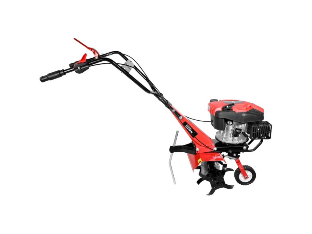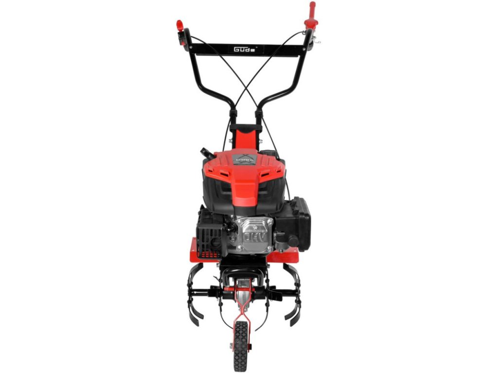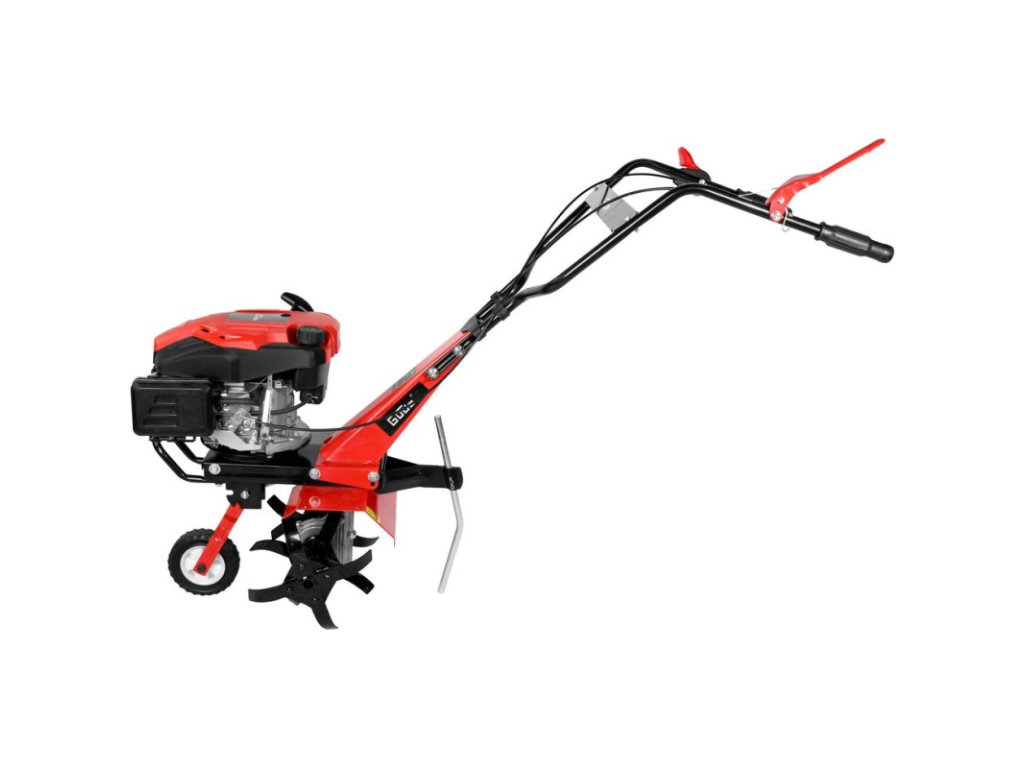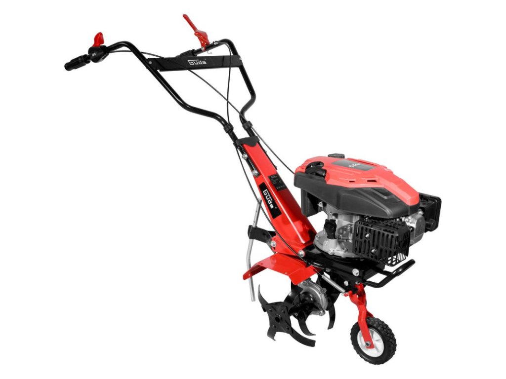 Benzínový záhradný kultivátor GF 2436.1 spája v sebe silný výkon s dômyselným dizajnom. Hlavnou súčasťou tohto záhradného pomocníka je 4-taktný motor Power-Engine, ktorý zabezpečuje výkonné a spoľahlivé pracovné procesy. Špeciálny tvar nožov zaručuje mimoriadne šetrné a zároveň účinné obrábanie pôdy. Široká rukoväť uľahčuje manipuláciu a zabezpečuje prácu bez únavy. Otočné vodiace koleso s priemerom 150 mm umožňuje presnú manipuláciu, zatiaľ čo samočinné spínanie zaručuje maximálnu bezpečnosť pri práci. Záhradný kultivátor sa dá jednoducho uviesť do prevádzky vďaka reverznému štartéru a nože vyrobené z vysokokvalitnej ocele odolnej proti opotrebovaniu zabezpečujú dlhú životnosť a odolnosť kultivátora. Ľahký záhradný kultivátor s výkonným 4-taktným motorom Power-Engine. Špeciálne tvarované nože na šetrné a zároveň efektívne obrábanie pôdy. Na prípravu pôdy menších až stredne veľkých plôch. Na zapracovanie mulčovacieho materiálu, rašeliny, piesku, hnoja alebo kompostu do pôdy.