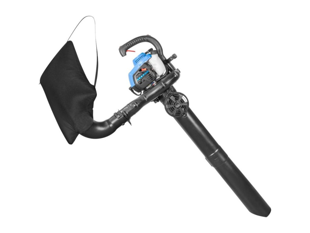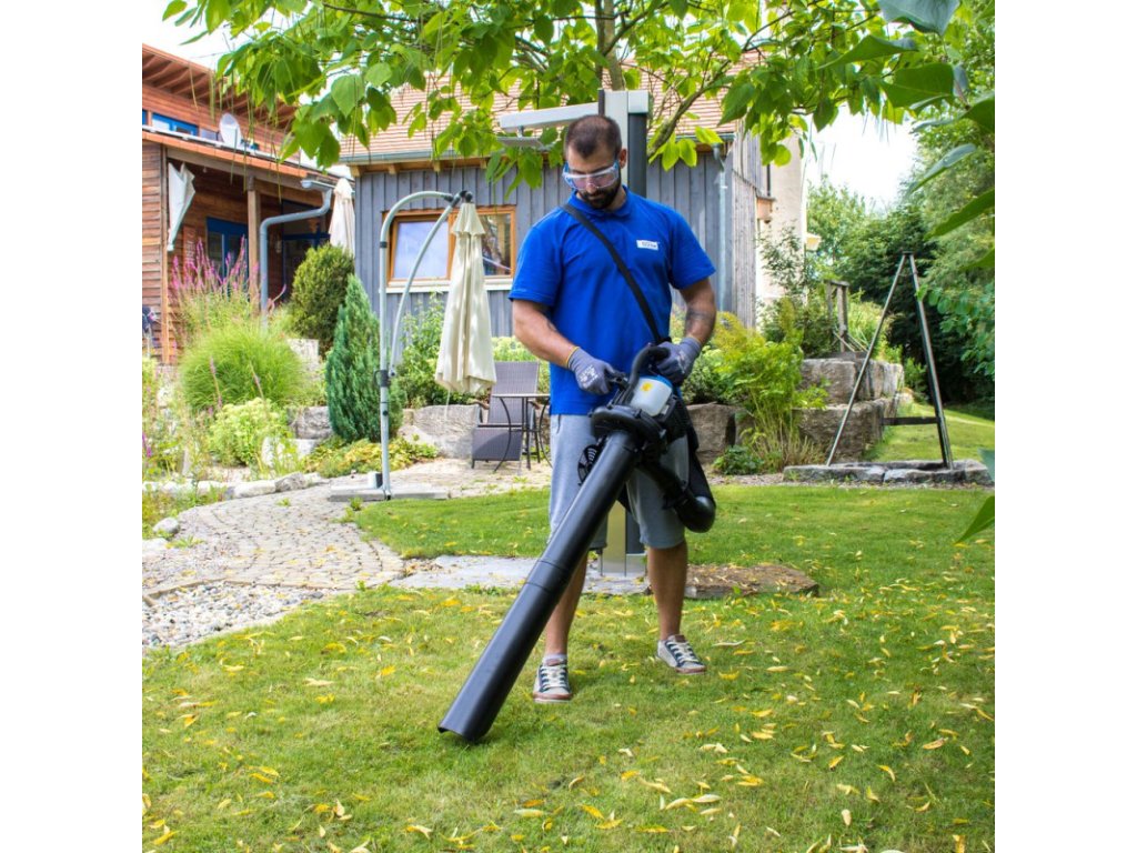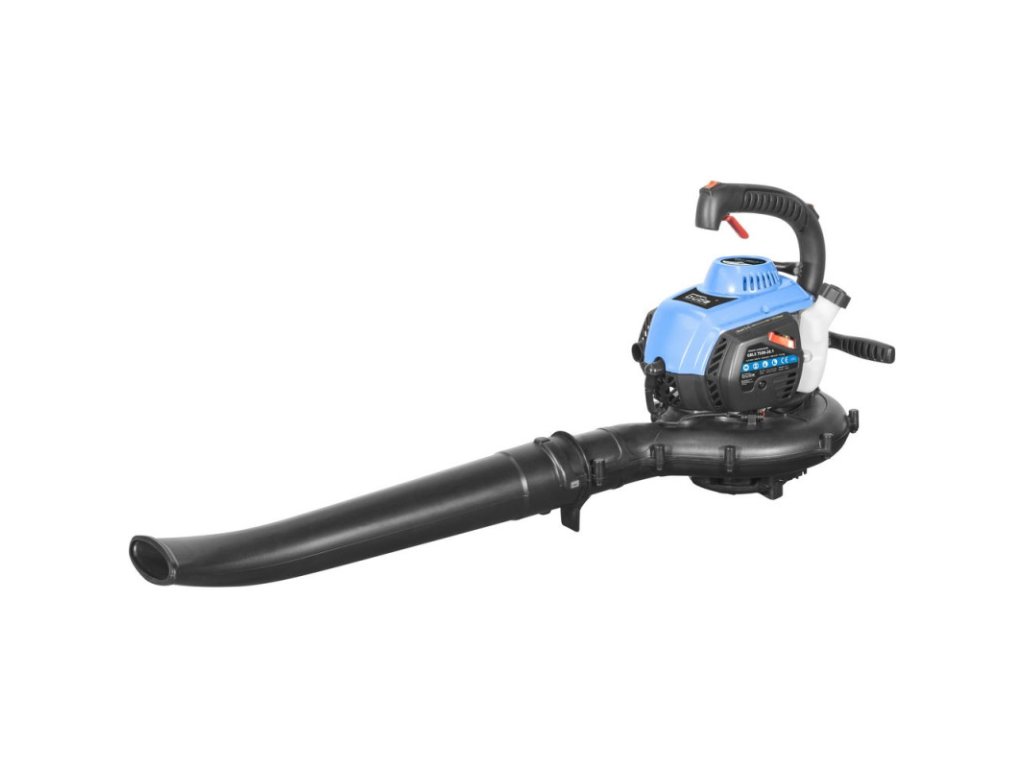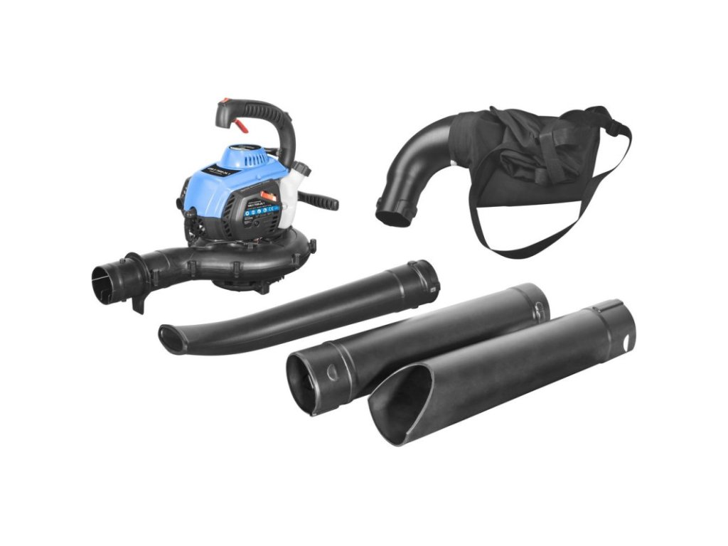 Benzínový fúkač a vysávač lístia s 2-dielnou sacou a fúkacou trubicou, veľký zberný vak s nosným popruhom, sýtič, vypínač, prídavná rukoväť a palivová pumpa na uľahčenie štartu, kľúč na zapaľovacie sviečky. Vhodný pre prácu v záhrade, na dvore, na chodníkoch a podobne.