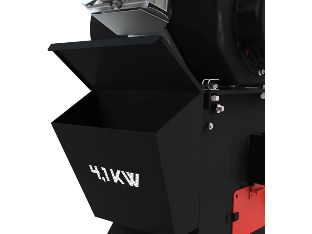 Záhradný drvič so 4-taktným motorom Power-Engine, 2 nože na rezanie pri vsunutí konárov, hrdlo na vkladanie konárov umiestnené na boku, 4 úderné kladivká. Kolesá so vzduchovými pneumatikami, široký podvozok. Ideálny na drvenie konárov s maximálnym priemerom 76 mm.