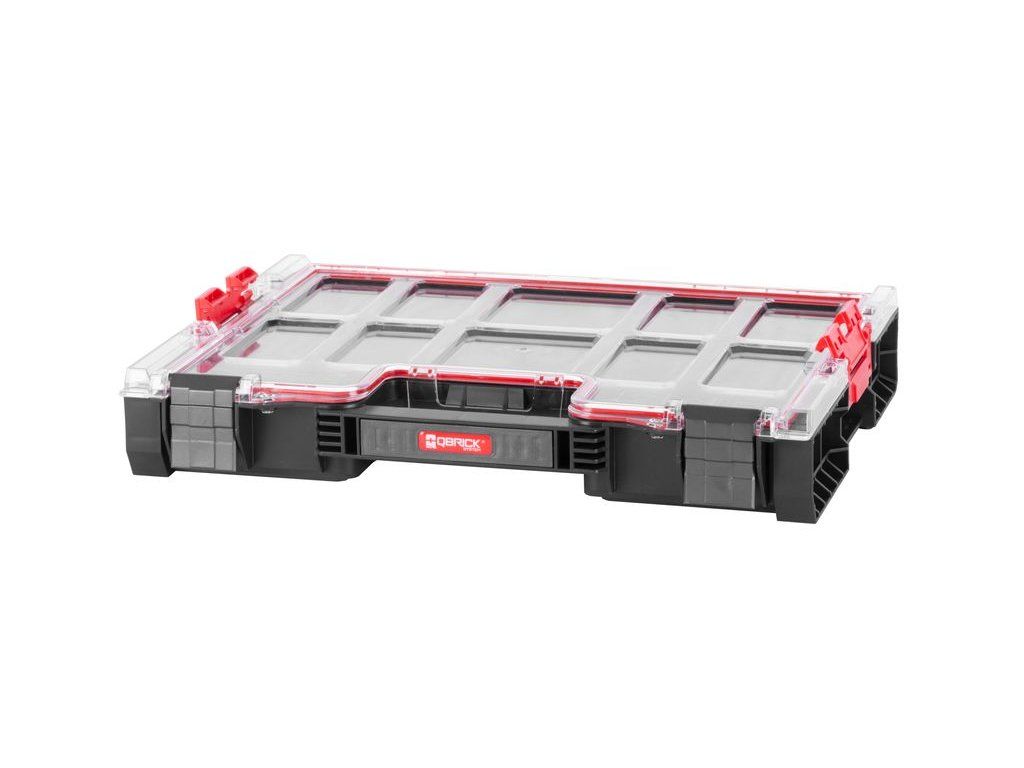 Qbrick System PRO Organizer 200 je stredný model z rady PRO. Okrem štandardnej výbavy tejto rady, ktorá zahŕňa patentovaný Easy Access System, tesnenie vo veku, superodolné veko z polykarbonátu, polyamidové bočné konektory - ponúka veľmi pohodlnú rukoväť, polyamidové predné zapínanie a dve ďalšie priehradky. Organizér obsahuje viacvrstvovú penovú vložku pre vlastné usporiadanie.