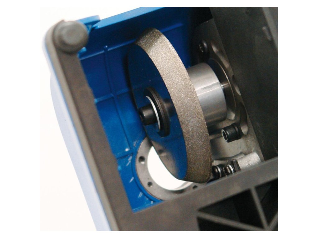 Brúska na ostrenie vrtákov s priemerom 3 - 13 mm. Plastový kryt, teleso stroja z hliníka.