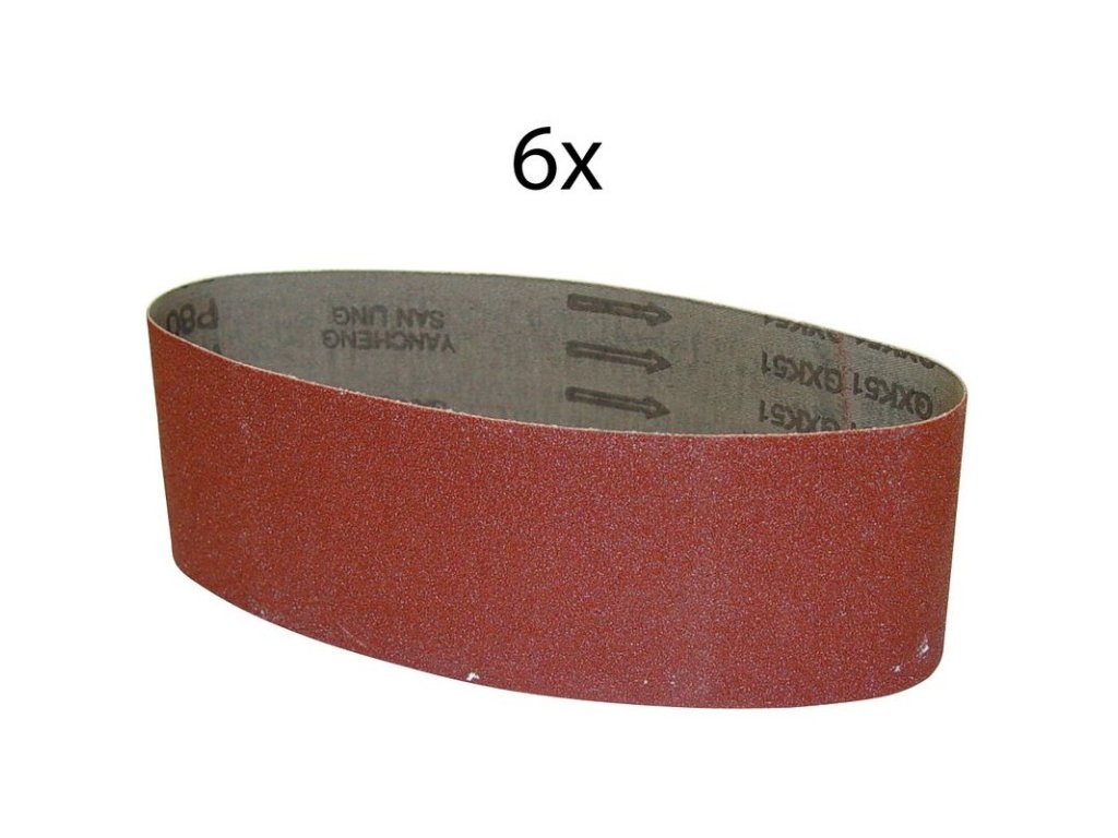 Brúsny pás vhodný na Pásovú brúsku BS 76-900 E (kód tovaru: 58146). V balení 6 ks.