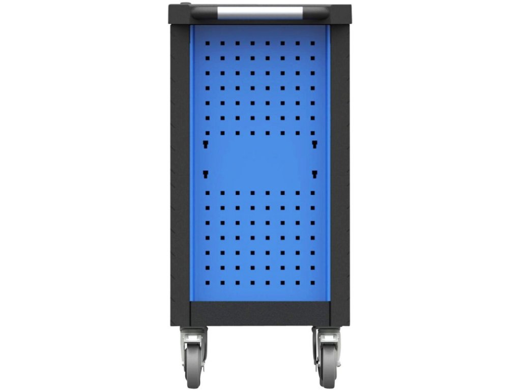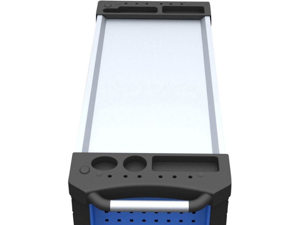 Dvojité steny pre väčšiu stabilitu, vysúvateľné zásuvky na guľôčkových ložiskách s uzamykateľným vertikálnym vysúvaním. Povrch z nehrdzavejúcej ocele, normované perforované steny, ochrana rohov proti nárazom, konštrukcia ošetrená práškovou farbou. Centrálne zamykanie zásuviek, zabezpečenie každej zásuvky proti nechcenému zatvoreniu, s možnosťou popisu. Dva otočné kolieska s brzdou, oceľová rukoväť.