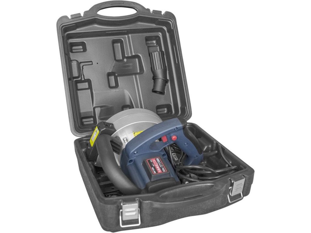Drážkovacia fréza s laserom na presné vedenie rezu, s pozvoľným rozbehom. Robustný kovový ochranný kryt. Protišmyková rukoväť s mäkkým úchopom, vodiaca rukoväť pre ľahkú prácu s minimálnym úsilím. Variabilne nastaviteľná šírka rezu, plynulé nastavenie hĺbky rezu. Pripojenie externého odsávacieho systému pre bezprašnú prácu. Dva diamantové rezné kotúče Ø 150 mm, drážkovací sekáč do muriva, adaptér dilatačnej škáry, prírubový kľúč, inbusový kľúč. Plastový kufor s kovovými sponami.