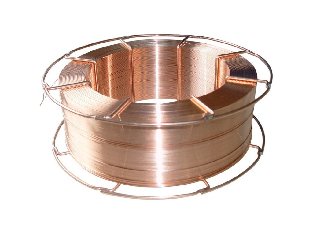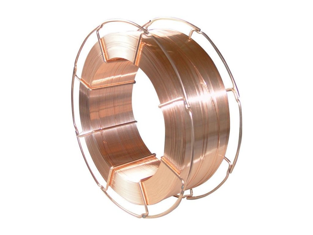 Zvárací oceľový drôt (potiahnutý meďou) na drôtenej cievke, podľa DIN 8559.