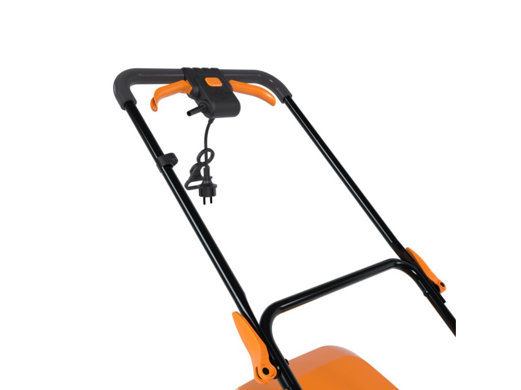 Nová elektrická kosačka Güde. So zameraním na jednoduché ovládanie, vysoký komfort pri práci a použitie kvalitných materiálov pre dlhodobú spokojnosť zákazníkov. Centrálne nastavenie výšky kosenia s pomocnou pružinou a celokovovým mechanizmom zabezpečí dlhú životnosť. Dizajn kosačky zaujme a dotvára celkový efekt série Güde Premium. Skelet kosačky je z vysokokvalitného plastu, ktorý je odolný proti nárazom. Vďaka obojručnému ovládaniu je prispôsobená na jednoduché a pohodlné ovládanie a kvalitné kosenie. Jednoduché skladanie a madlo na prenášanie kosačky uľahčí manipuláciu s kosačkou aj počas prenášania.