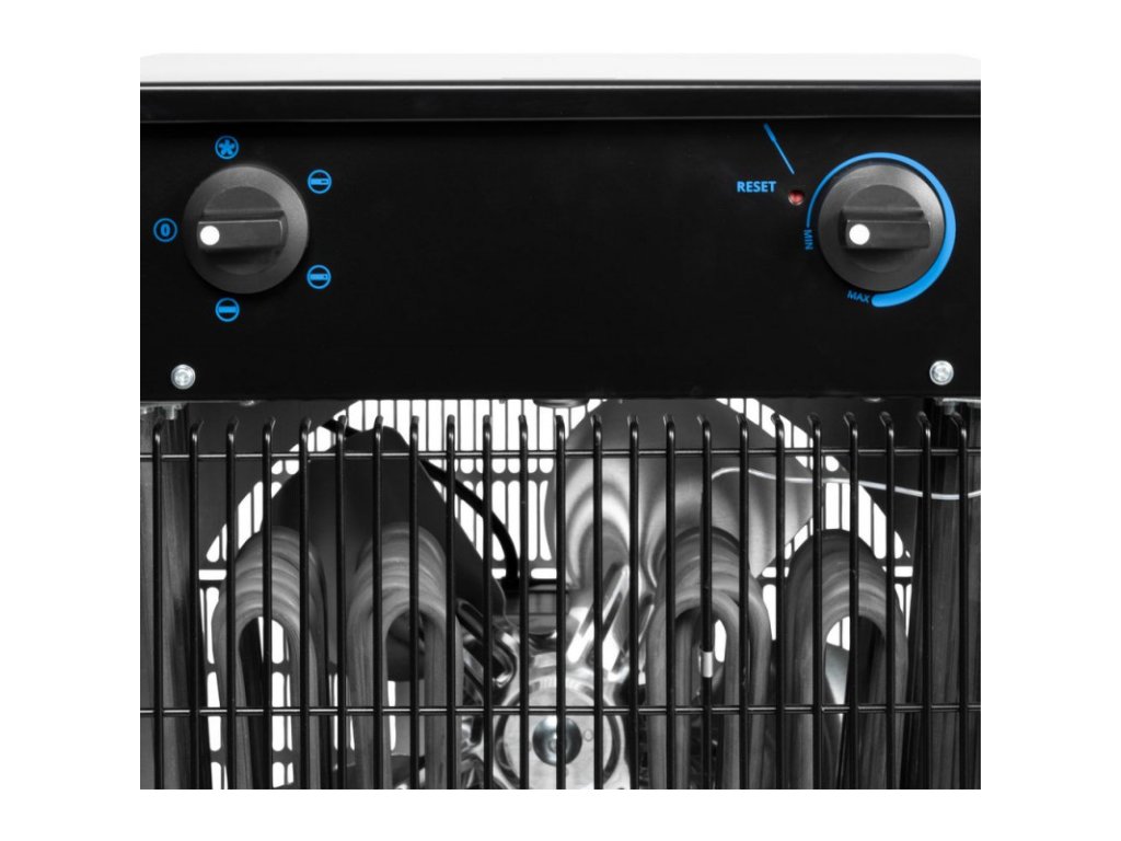 Elektrický ohrievač s dvoma stupňami ohrevu s funkciou ventilátora. Ochrana proti prehriatiu, termostat, praktické rukoväte na oboch stranách. Ohrievač je vhodný len do dobre izolovaných miestností alebo na príležitostné použitie v priestoroch, v ktorých nie sú povolené vykurovacie zariadenia na olej alebo plyn.