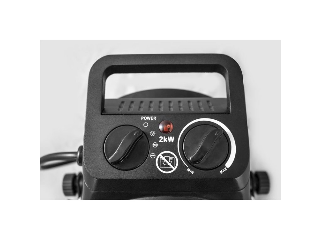 Elektrický ohrievač na efektívne vykurovanie menších vnútorných priestorov. Kompaktné rozmery a nízka hmotnosť. Maximálna bezpečnosť vďaka automatickému vypnutiu pri prehriatí. Plynulé nastavenie teploty pomocou termostatu. Rukoväť na prenášanie, nízka hlučnosť. PTC (pozitívny teplotný koeficient), 2 vykurovacie stupne.