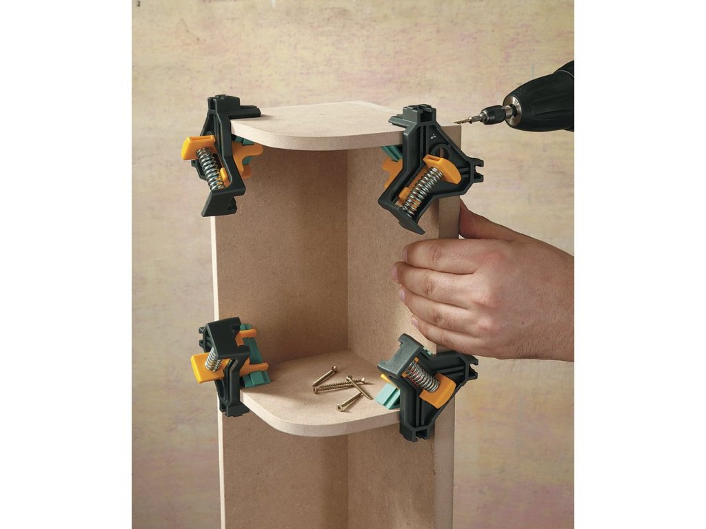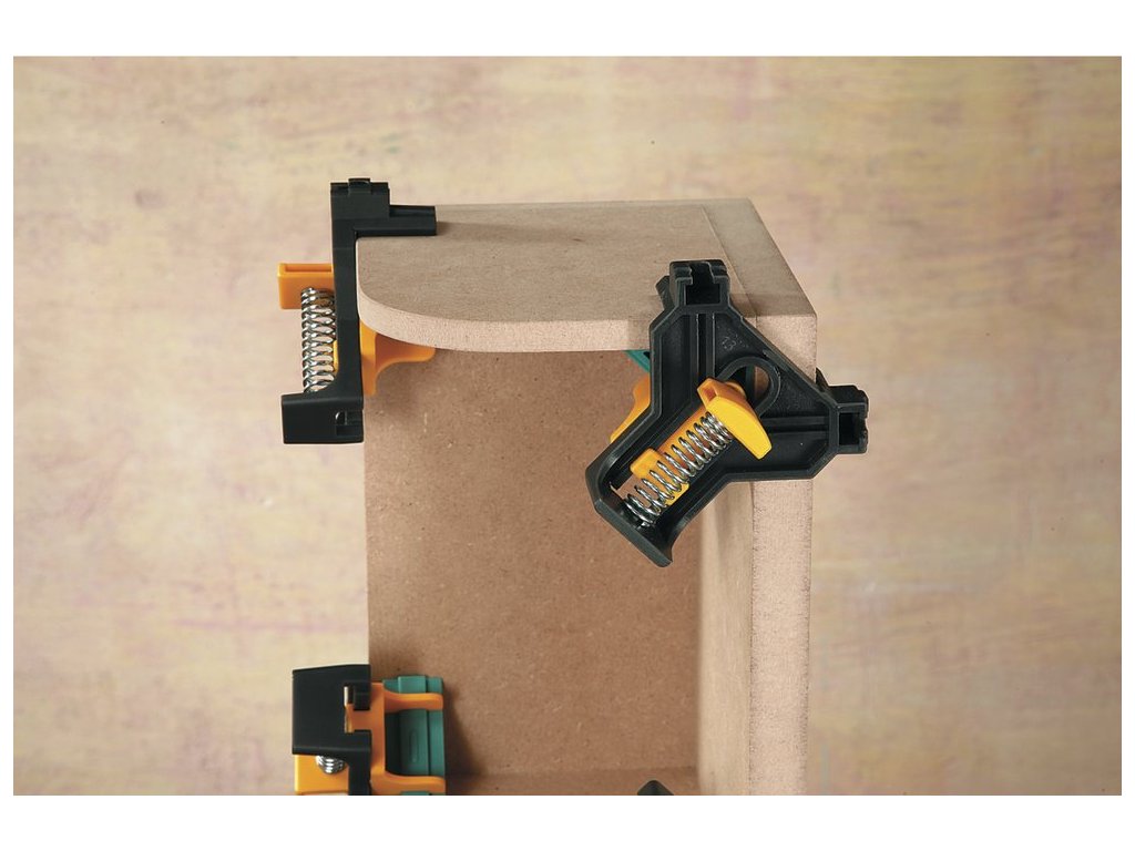 K jednoduchému a rýchlemu fixovanie dosiek a rámov v uhle 90 ° napr. Pri stavbe regálov, skriniek alebo rámov, fixovací pomôcka pri skrutkovanie alebo glejenie, pre rohové a T spájanie, tiež pri rozdielnych šírkach dosiek, pre šírku dosky 10 - 22 mm, jednoručné obsloha - druhá ruka voľná pre materiál EAN 4006885305106 ELN0856Dodatočné parametre