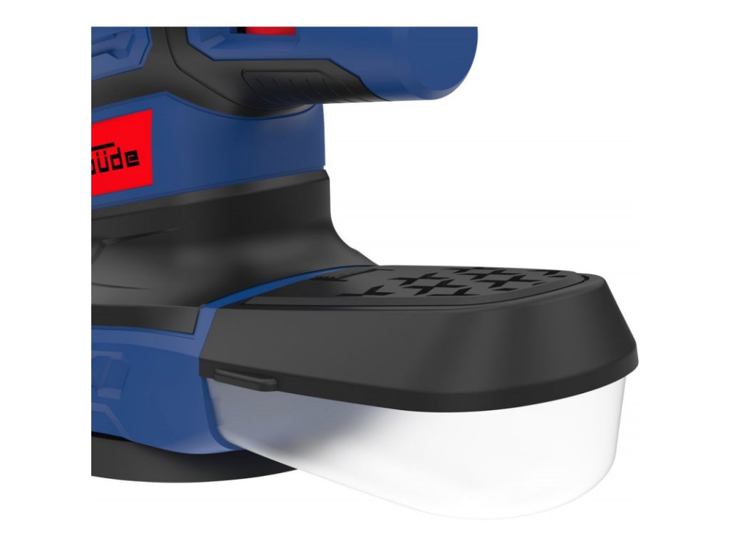 Excentrická brúska s ergonomickou rukoväťou s mäkkým úchopom. Brúsna podložka so suchým zipsom pre rýchlu výmenu brúsneho papiera. uzamykateľný spínač pre nepretržitú prevádzku, plynulá regulácia počtu kmitov. Integrovaný systém odsávania prachu s kazetou na zachytávanie prachu pre efektívne odsávanie prachu. Vrátane brúsneho papiera Ø 125 mm (K80).