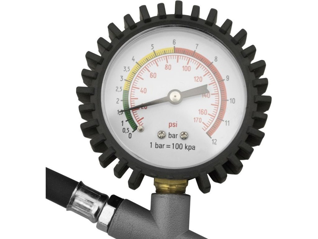 Hustilka pneumatík umožňuje kontrolu tlaku vzduchu v pneumatikách a plnenie pneumatík. Gumová manžeta odolná proti nárazom chráni tlakomer pred ľahkými nárazmi a zachováva jeho funkčnosť. Rukoväť a kryt sú vyrobené z hliníka. Extra dlhá hadica zaisťuje potrebnú flexibilitu pri práci. Citlivá plniaca páka umožňuje presné naplnenie pneumatík. Indikátor manometra je rozdelený na kroky po 0,1 bar. Súčasťou je vypúšťací ventil stlačeného vzduchu a zátka Michelin.