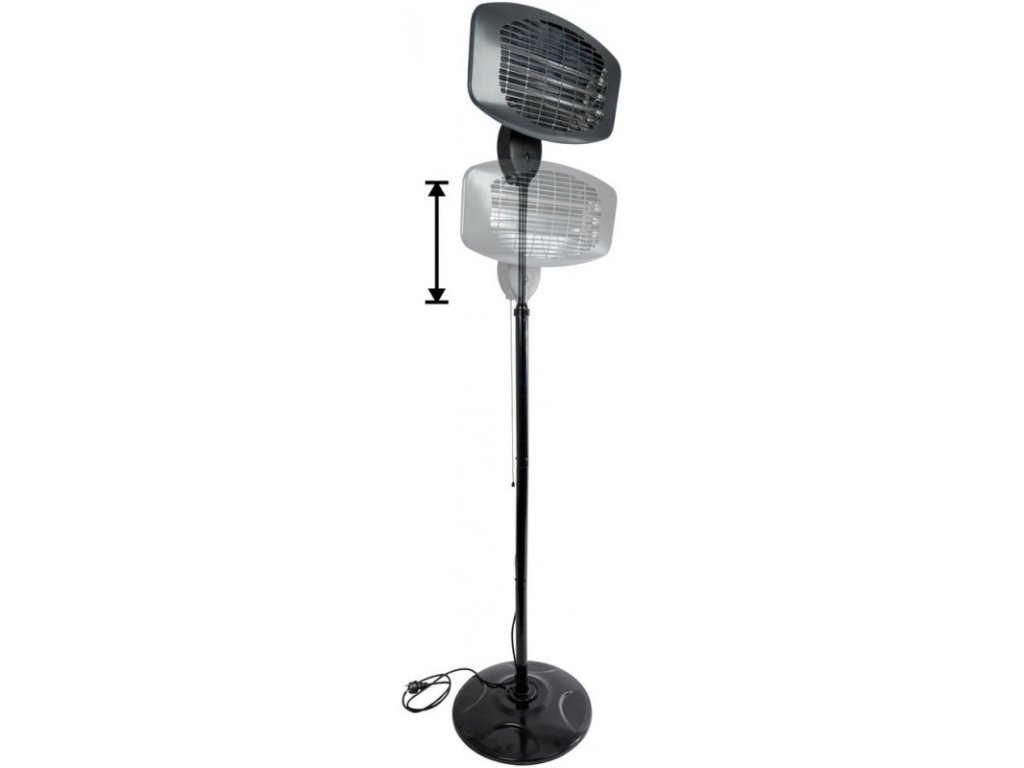 Samostatne stojaci infračervený teplomet s kremennými vykurovacími prvkami šíri mimoriadne príjemné teplo extrémne rýchlo a takmer nehlučne. Výška vykurovacej hlavy a jej uhol vyžarovania sú variabilné. Ohrievacie teleso je optimálne zaistené veľkou základňou a ochranou proti prevráteniu. Tri stupne vyhrievania, vysokokvalitné kremenné vyhrievacie prvky. Príjemné teplo vďaka infračervenému žiareniu. Teleskopická tyč pre flexibilné nastavenie výšky (1,20 - 2,10 m). Variabilný uhol vyžarovania vyhrievacej hlavy. Ovládanie pomocou šnúrky (dĺžka približne 80 cm). Extrémne tichý chod, maximálna bezpečnosť vďaka ochrane proti prevráteniu. Vhodný na použitie vo vnútorných a vonkajších priestoroch (vodotesný IPX4). Ideálny spoločník počas chladných večerov na terase alebo balkóne.