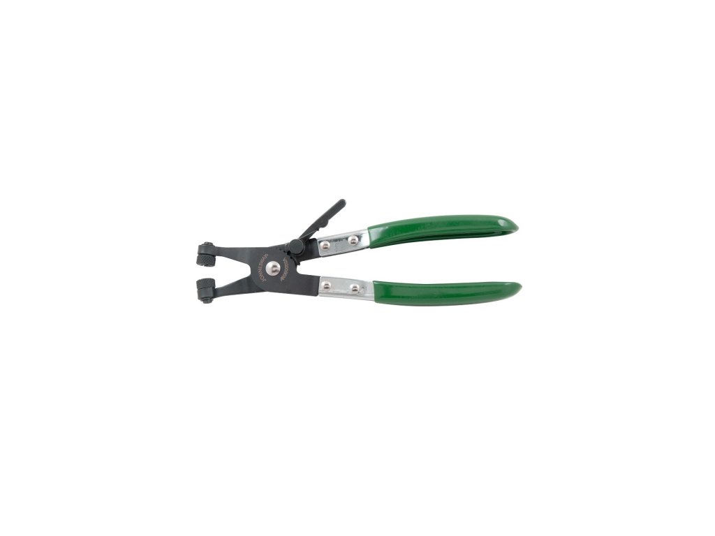 Kliešte priame na hadicové spony JONNESWAY® AR060002A. Kliešte na montáž a demontáž samosvorných, CLIC a CLIC-R hadicových spôn. Hadicové spony CLIC (klik) sa používajú na gumové alebo polyuretánové hadice. Každá spona je určená vždy len na jeden priemer hadice. Rukoväte zaliate v PVC pre lepší komfort a držanie v ruke. Pružinový systém spätného otvorenia rukovätí.