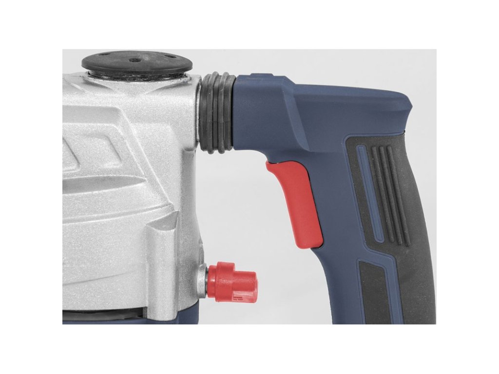 Kombinované kladivo s antivibračným systémom, so 4 funkciami: vŕtanie, sekacie práce, vŕtanie s príklepom, otáčkový doraz. Mäkká rukoväť pre ergonomickú a bezpečnú prácu. Variabilná, odnímateľná prídavná rukoväť. Kovový hĺbkový doraz vŕtania s rýchloupínacím uzáverom. Rýchloupínacie skľučovadlo SDS plus na výmenu vrtákov bez náradia. Plynulá regulácia otáčok s plynulým rozbehom. Prírazový doraz na vŕtanie bez príklepu. Rotačný doraz na ľahké sekanie. Vrátane 3 ks vrtákov SDS-plus (Ø 8/10/12 mm), hĺbkového dorazu vŕtania, prídavnej rukoväte, plochého a špicatého sekáča 250 mm, krytu proti prachu a kľúča. Kvalitný prepravný kufor s kovovými prackami.