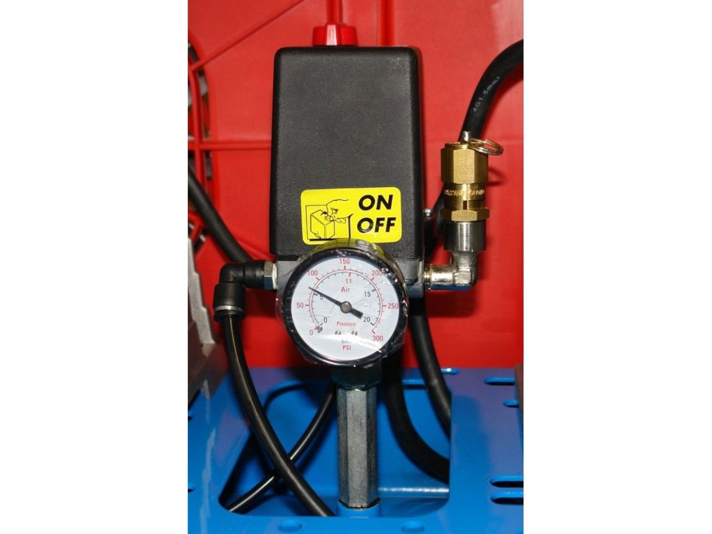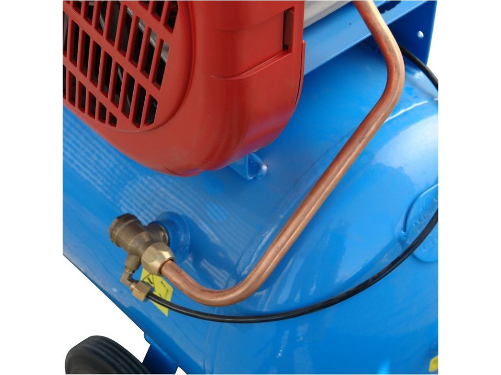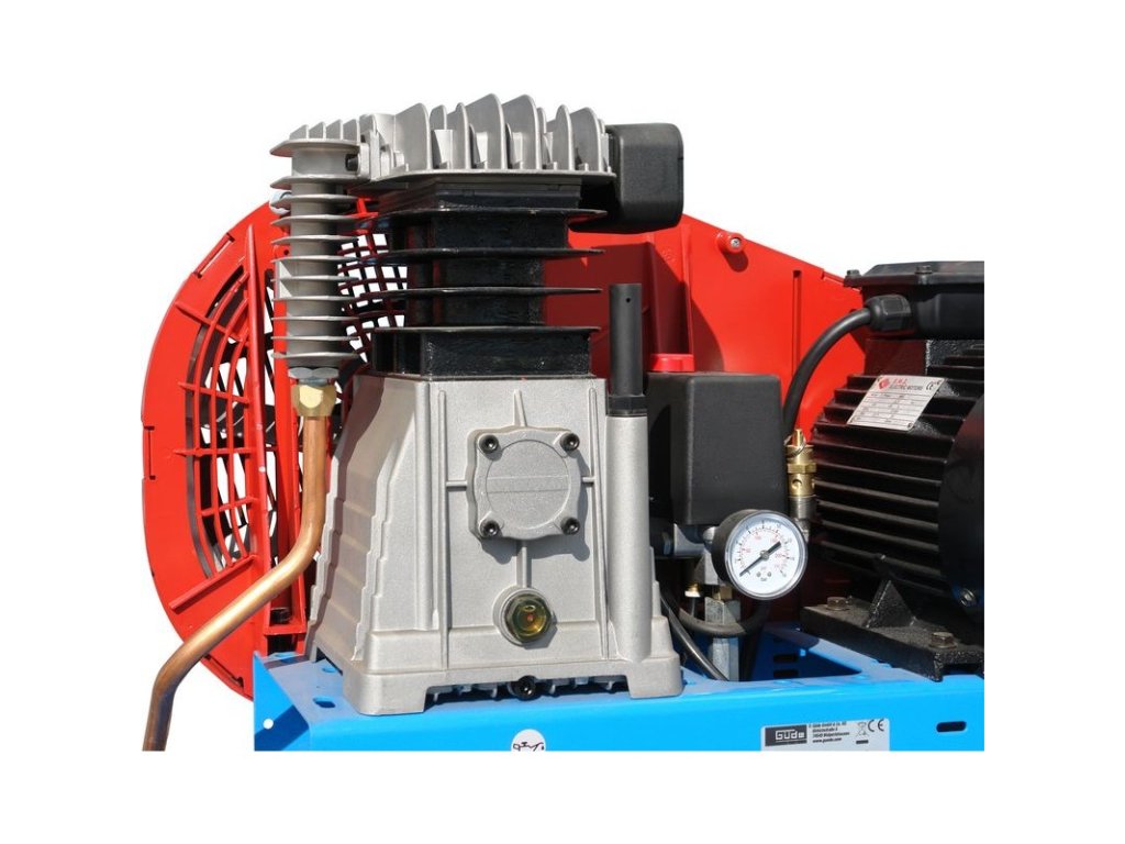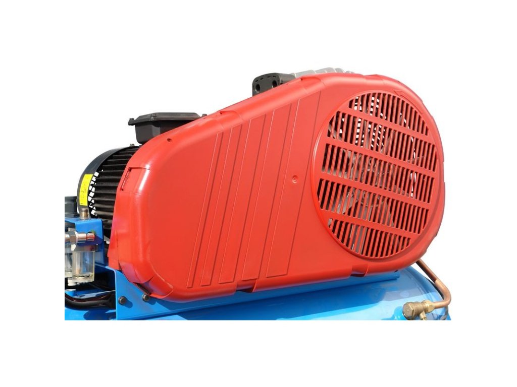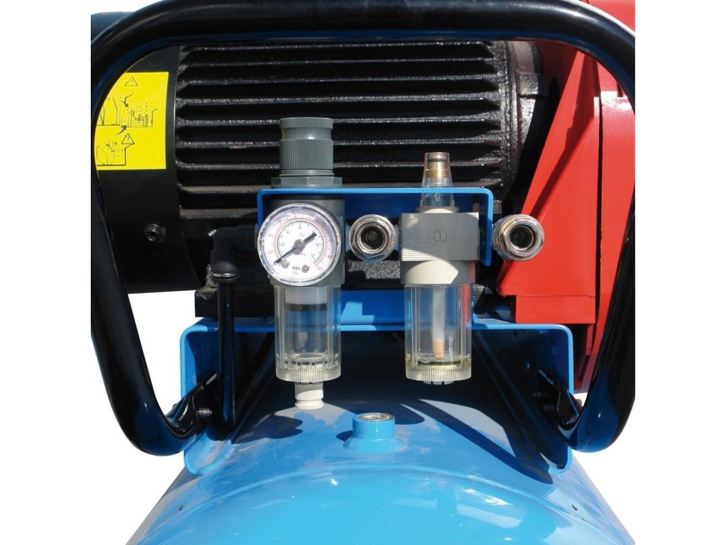 Dvojvalcový kompresor s olejovým mazaním, s remeňovým pohonom. Tlakový spínač Condor, manometer tlaku v nádobe a manometer pracovného tlaku, redukčný ventil a odlučovač vody, 3 spojky na stlačený vzduch, dochladzovač, spätný ventil, vypúšťací ventil na kondenzát. Bezpečnostný ventil, vzduchový filter, ochrana proti preťaženiu. Dvojitá noha s gumovým tlmičom, plastové kolesá, držiak vzduchovej hadice.