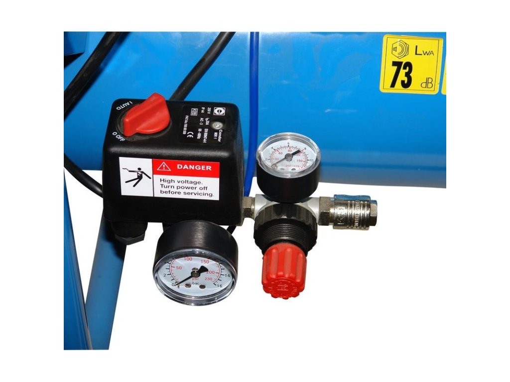 Bezolejový 2-valcový piestový kompresor s priamym pohonom, rukoväť, odolný pomalý chod, o 20% tichší ako iné kompresory, manometer tlaku v kotle a pracovného tlaku. Redukcia tlaku, 1 spojka stlačeného vzduchu, poistný ventil a skrutka na vypúšťanie kondenzátu. Vzduchový filter. Originálny tlakový spínač Condor. Ventily z nehrdzavejúcej ocele. Vzduchové pneumatiky.