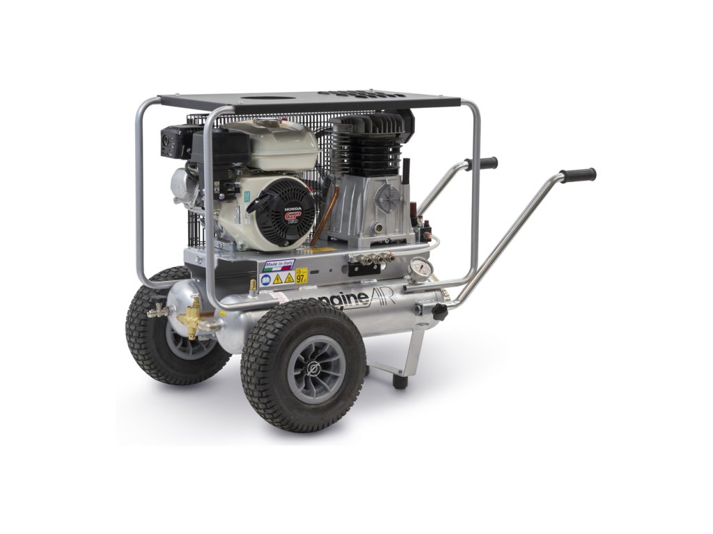 Kompresor z rady Engine Air v olejom mazanom prevedení s kompresorovú jednotkou PAT38A spojenou s benzínovým motorem pomocou klinových remeňov. Kompresor poskytuje sací výkon 411 l/min a je určený pre dodávku vzduchu v aplikáciích, kde nie je možné kompresor připojit ke zdroji elektrickej energie. Kompresor disponuje nasledujúcim štandardným vybavením a uživatelskými benefity:
