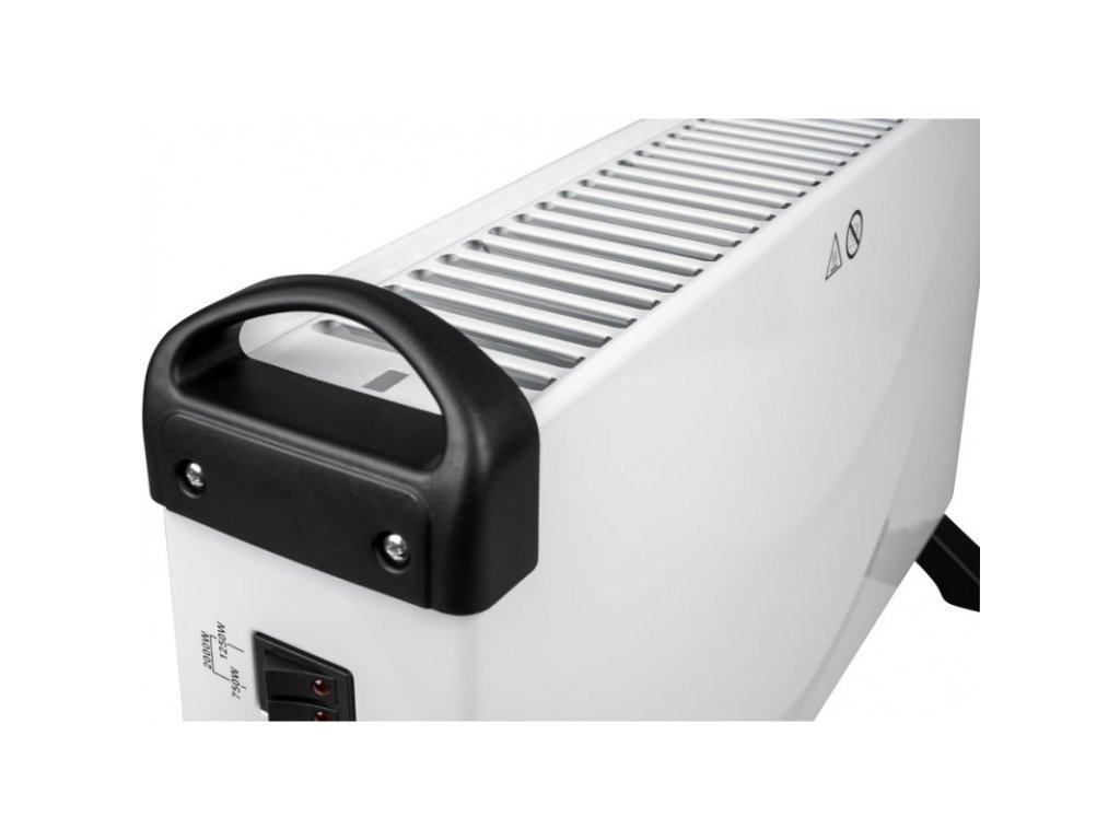 Konvektorový ohrievač s výkonom 2000 W zabezpečí príjemné teplo prúdením vzduchu rýchlo a nehlučne. Tento malý konvektor je vďaka nízkej hmotnosti a praktickým rozmerom použiteľný ako prídavné kúrenie v rôznych miestnostiach a veľmi jednoducho sa prenáša. Tri stupne vyhrievania, príjemné teplo bez hluku vďaka prúdeniu vzduchu. Plynule nastaviteľný termostat pre individuálne tepelné prispôsobenie a konštantné udržiavanie teploty. Maximálna bezpečnosť vďaka ochrane proti prehriatiu. Vynikajúca stabilita vďaka vertikálnemu vyhotoveniu a stojacim nohám. Praktické rukoväte pre pohodlné a bezpečné prenášanie.