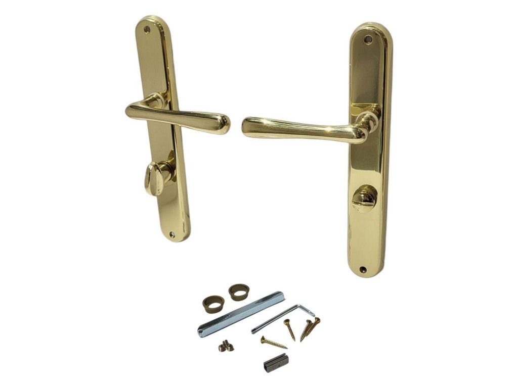 Kovanie sa vyznačuje kvalitným spracovaním a pevnou konštrukciou, ktorá zaručuje dlhodobú spoľahlivosť a pohodlné každodenné používanie. Lesklý povrch štítkov i kľučiek pôsobí reprezentatívne a dodáva dverovému krídlu kultivovaný vzhľad. Tvar kľučky je ergonomicky riešený pre pohodlné uchopenie a intuitívne ovládanie.