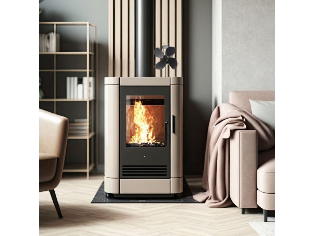 Ventilátor je poháňaný výlučne teplom z pece, bez dodávky elektrického prúdu, zvyšuje účinnosť a šetrí energiu. Zabezpečuje efektívnejšiu distribúciu tepla a väčší komfort v miestnosti, a to takmer nehlučne a úplne zadarmo. Viac tepla pri rovnakom vykurovacom výkone. Vlastný pohon vďaka využitiu termoelektrickej energie (Seebeckov efekt) premieňa teplo na elektrinu. Ideálne sa hodí pre všetky kovové pece vykurované drevom alebo peletami s vodorovným povrchom. Samoregulačná rýchlosť otáčania, v závislosti od teploty, mimoriadne tichá prevádzka, magnetický teplomer je súčasťou balenia.