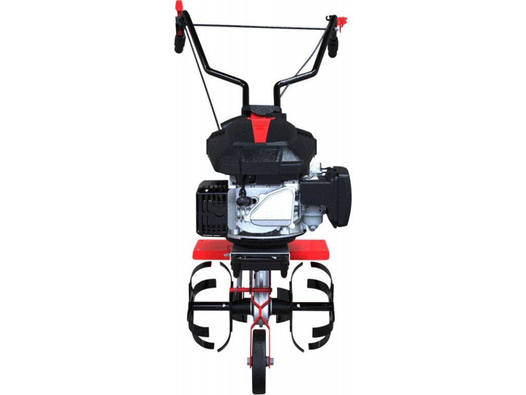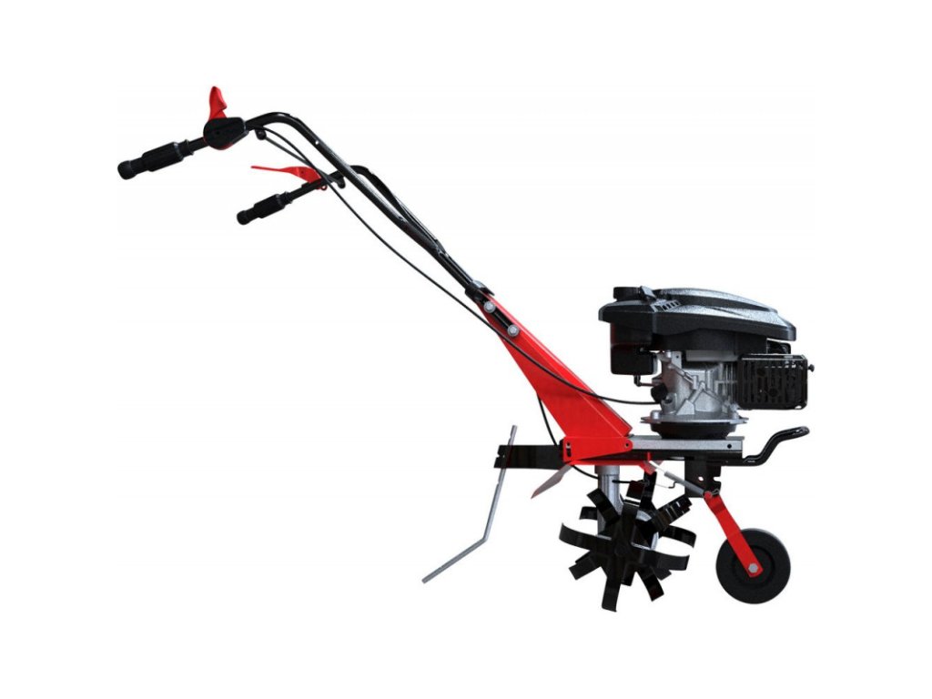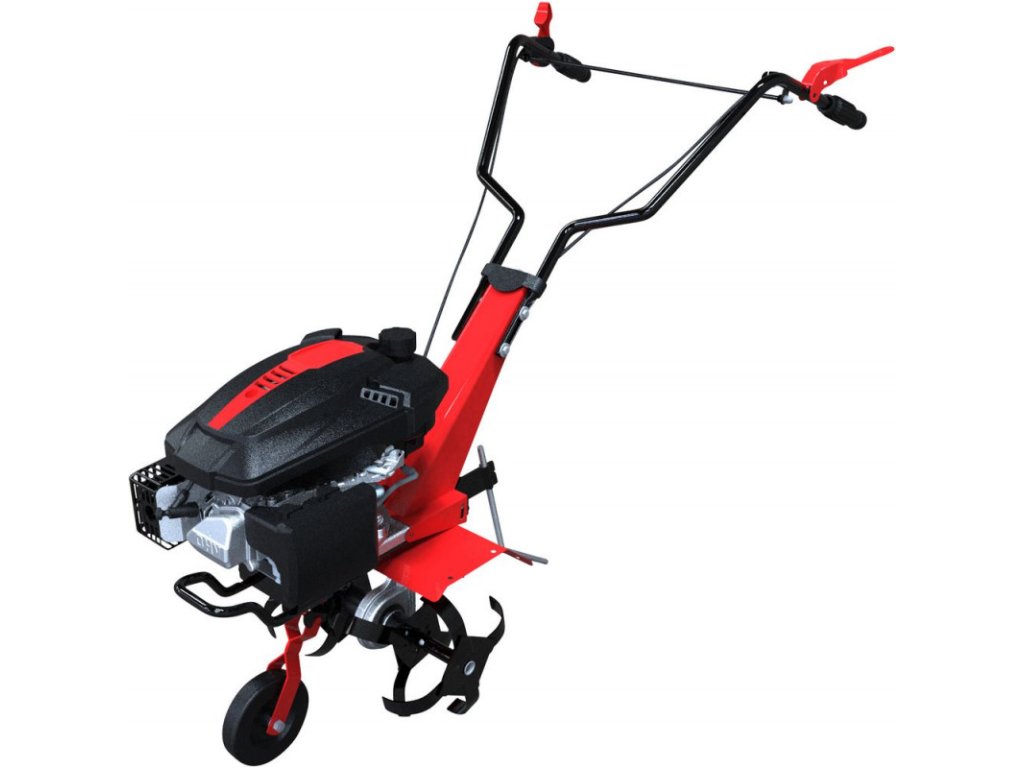 Kultivátor so 4-taktným motorom Power-Engine, široká rukoväť pre jednoduchú manipuláciu, výkyvné vodiace koliesko s Ø 147 mm, režim so stlačeným tlačidlom pre vysokú bezpečnosť, reverzný štart, nože z odolnej ocele s vysokou životnosťou. Pre prípravu pôdy na malých a stredne veľkých plochách. Na zapracovanie mulču, rašeliny, piesku, hnojiva alebo kompostu.