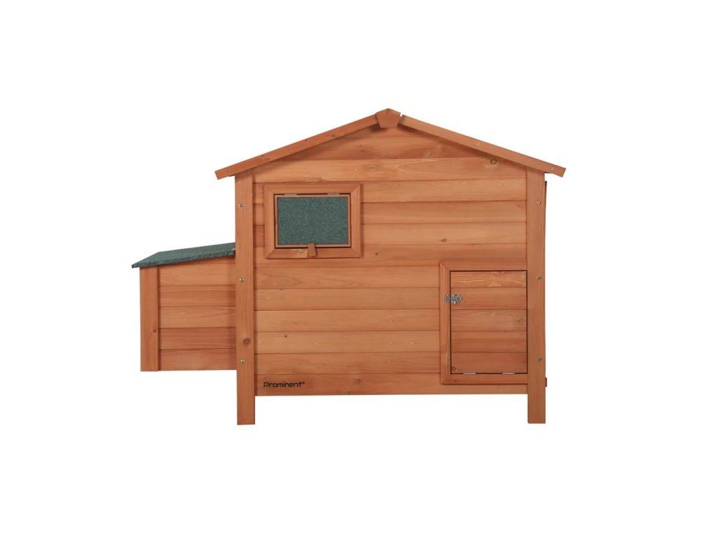 Kurín Prominent Oliver z odolného jedľového dreva. Rozmery 134 x 90 x 99 cm. Vyrobené z odolného jedľového dreva. Strecha pokrytá asfaltovými šindľami. Bez spodného pletiva.Dodatočné parametre