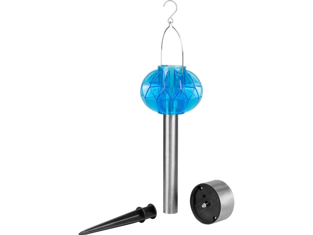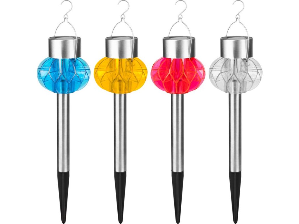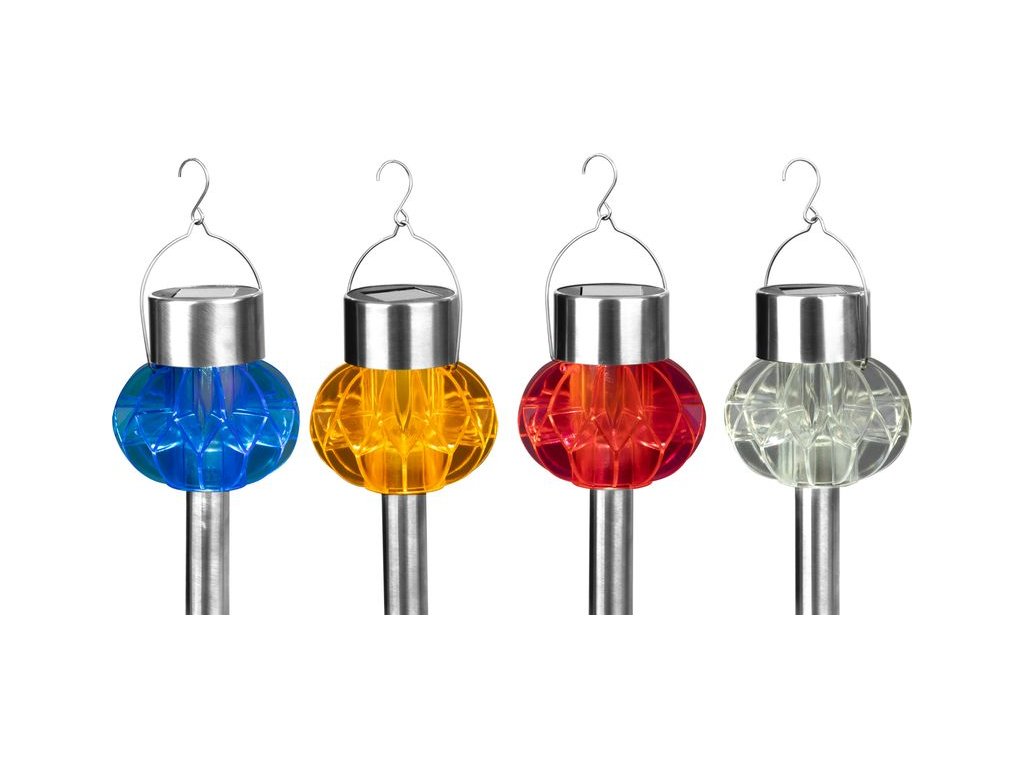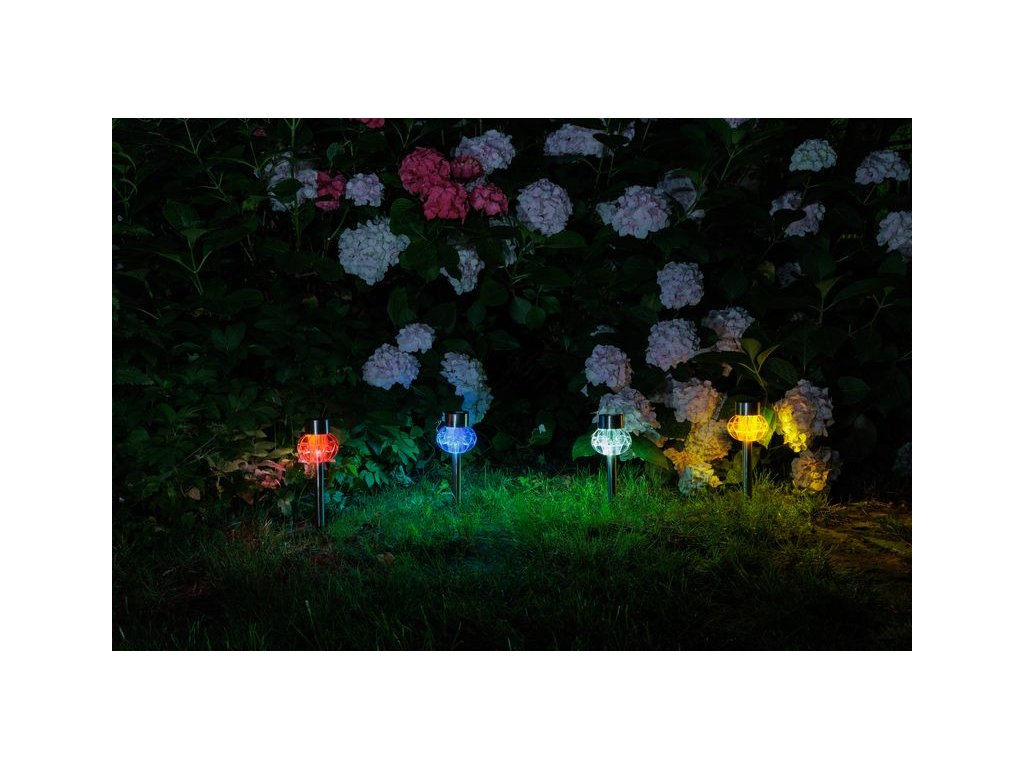 Štýlová záhradná solárna lampa je moderným doplnkom každej záhrady. Počas dňa solárny panel konvertuje slnečnú energiu na elektrickú energiu, ktorá sa ukladá do dobíjateľnej batérie. V noci sa svetlo automatický zapne a využíva uloženú energiu. Lampa tak prostredníctvom farebných LED diód svieti príjemným svetlom. Rozmery tejto plastovej lampy sú 9 x 36 cm.