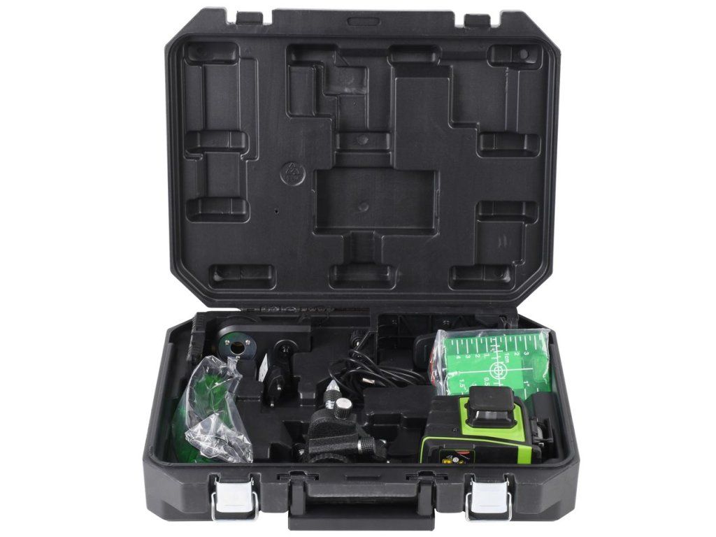 Merací rozsah tohto laseru je 30 m bez detektora, s detektorom 50 m. Napájanie: 5,2 Ah Li-ion batéria. Súčasťou balenia je 5,2 Ah Li-ion batéria, nabíjačka, statív, magnetický držiak, univerzálny držiak, terčík, kufrík, okuliare..