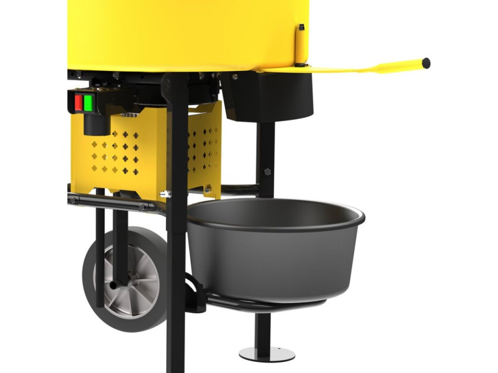 Silný elektromotor s výkonom 2000 W, veľký bubon s priemerom 720 mm, mechanizmus na otváranie vriec na ochrannej mriežke, bezpečnostný spínač na veku, sklopné zariadenie na vedrá, efektívna prevádzka vďaka rotácii miešacej nádoby s rýchlosťou 32 otáčok za minútu.