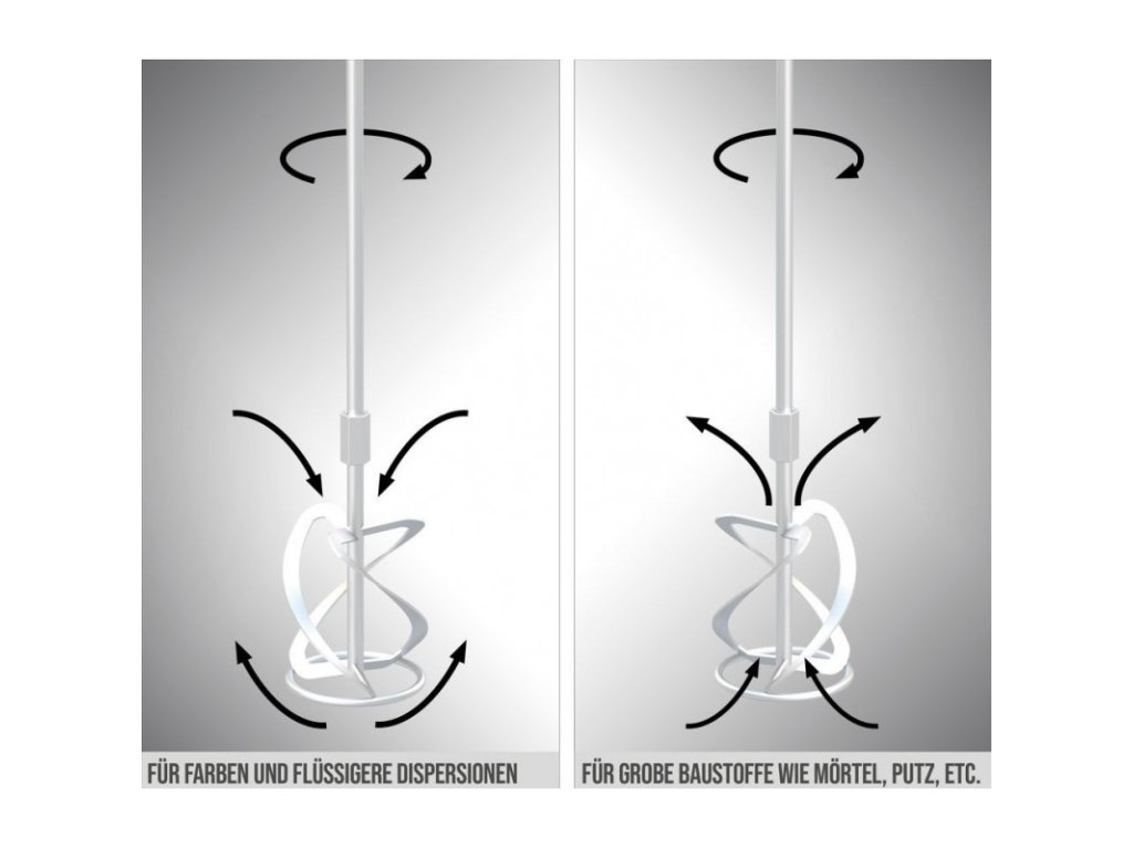 Profesionálne a výkonné miešadlo určené na premiešavanie malty, farby a na miešanie práškových stavebných materiálov, ako sú farby a disperzie. Vysoký komfort pri práci vďaka ergonomickému telesu s protišmykovou pogumovanou rukoväťou. Robustná kovová prevodová skrinka, elektronická regulácia otáčok v rukoväti pre rýchle a presné nastavenie rýchlosti miešania. Dvojrýchlostná prevodovka. Funkcia Soft-Start zaisťuje pozvoľné spustenie miešacieho nadstavca. Vysokokvalitný kábel s gumovou izoláciou (H07RN-F) dlhý 3,7 metra. Motorová jednotka, miešací nadstavec na hrubozrnné stavebné materiály ako malta, omietka alebo lepidlo, miešací nadstavec na jemnozrnné stavebné materiály ako farby a disperzie.