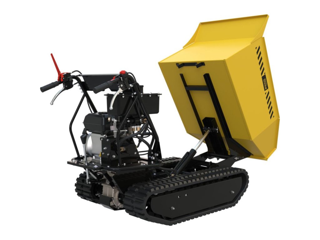 Motorový fúrik na prepravu sypkého a pevného materiálu rôznych druhov do 500 kg. Pevná a odolná oceľová konštrukcia, hydraulický výklopný prepravník, motor s normou Euro V šetrný k životnému prostrediu. Prevodovka s ozubenými kolesami, ovládanie smeru jazdy na rukoväti, nastaviteľné bočnice, pásový pohon.