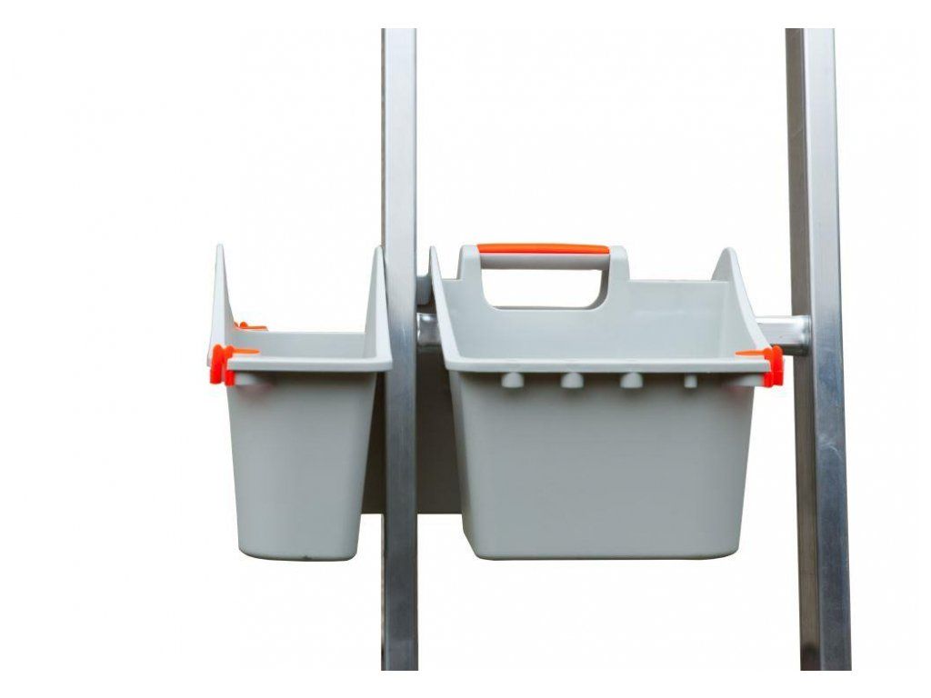 Praktický odkladací multibox typ 3003 k použitiu pri práci na rebríku, pri ktorej je potrebné viac náradia. Nosnosť plastového boxu je max. 3 kg, je vhodný k použitiu ako na rebríkoch rady EUROSTYL, tak aj rady FORTE - okrem typov vyrobených z profilu 102x25 mm (tj. 8124, 8220, 8320, 8324, 8720, 8820, 8824 a 8615).Dodatočné parametre