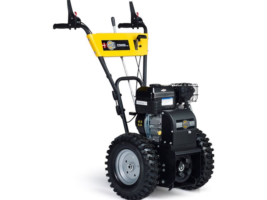 Combi 800B je všestranný a výkonný multistroj, ktorý vám umožňuje pracovať s mnohými rôznymi nástrojmi a vykonávať tak rôzne úlohy. Pre Combi 800 je možné dokúpiť nasledovné príslušenstvo: zametací stroj s pracovnou šírkou 80 cm, otočným adaptérom a výškovo nastaviteľnými transportnými kolieskami. Radlica na sneh s pracovnou šírkou 80 cm, otočným adaptérom. Snehová fréza s pracovnou šírkou 61 cm, 2-stupňovým systémom vyhadzovania a ovládacím panelom na ovládanie smeru vyhadzovania (možné ovládať aj počas jazdy). Sklápacia vlečka. Predná kosačka na trávu. Náradie možno odpojiť a zapnúť za menej ako 10 sekúnd bez použitia náradia. Motor a náprava sú umiestnené tesne nad stredom kolesa, čo poskytuje najlepšie vyváženie stroja. Stroj poháňa 4-taktný benzínový motor Briggs and Stratton s objemom 208 cm3 so štyrmi prevodovými stupňami vpred + spiatočka. Rukoväte boli dôkladne testované pri teplotách od -30 do +30 stupňov Celzia. Stroj má inteligentnú podpornú nohu, ktorá drží stroj vo vzpriamenej polohe, keď je náradie odstránené. Stroj je dodávaný bez motorového oleja!Charakteristika a technické údaje: Výrobca motora: Briggs and Stratton Model motora: Séria XR950 Typ motora: 4-takt Objem zdvihu: 208 ccm Objem nádrže: 3,1 litra Výkon: 4,5 kW pri 3600 ot./min. Štartér: Ťahací štartér Motorový olej: SAE 30 Kapacita motorového oleja: 0,6 litra Palivo: Bezolovnatý benzín Rýchlosti: 1,5-3,0-4,2-5,9 km/h Hmotnosť: 55,5 kg Záruka na motor: 3 roky TEXAS je 100% dánska rodinná firma, ktorá vyrába záhradnú techniku od roku 1960. Všetko to začalo so záhradnými kultivátormi, no dnes sa sortiment rozšíril na všetky typy motorových záhradných strojov (elektrický, batériový a benzínový pohon). Hrdé tradície sa začali v továrni v Dánskom Odense, kde dodnes sídli. TEXAS vlastní 2 továrne, ktoré vyrábajú väčšinu našich záhradných strojov. To dáva plnú kontrolu nad vývojom, kvalitou a kontrolou, ako aj zodpovednú a modernú výrobu.Klikni video. Klikni video.Dodatočné parametre