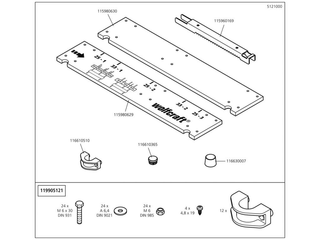 Náhradný diel Balení 5121(116115123) pro Koza na řezání dřeva Wolfcraft 5121000